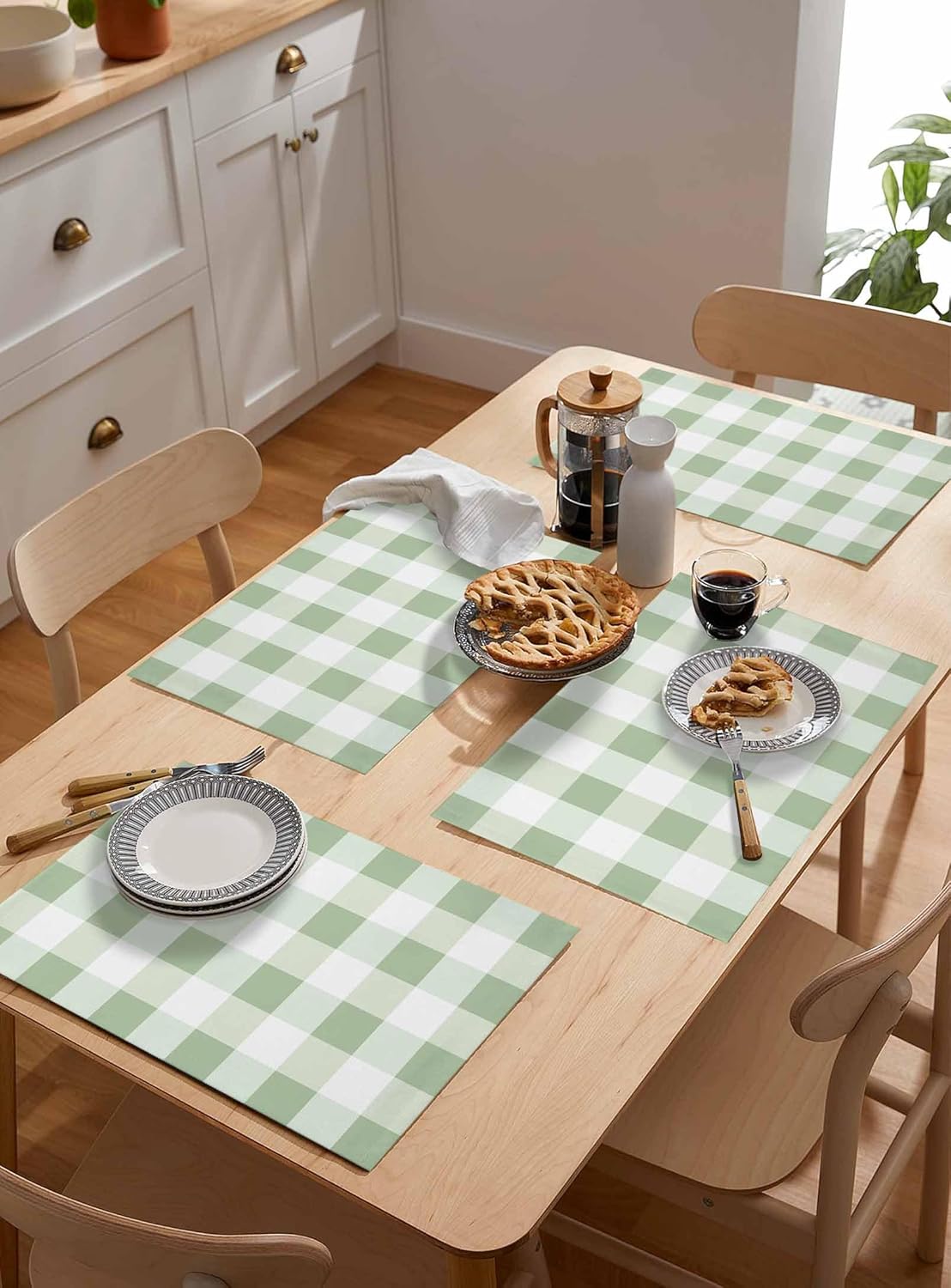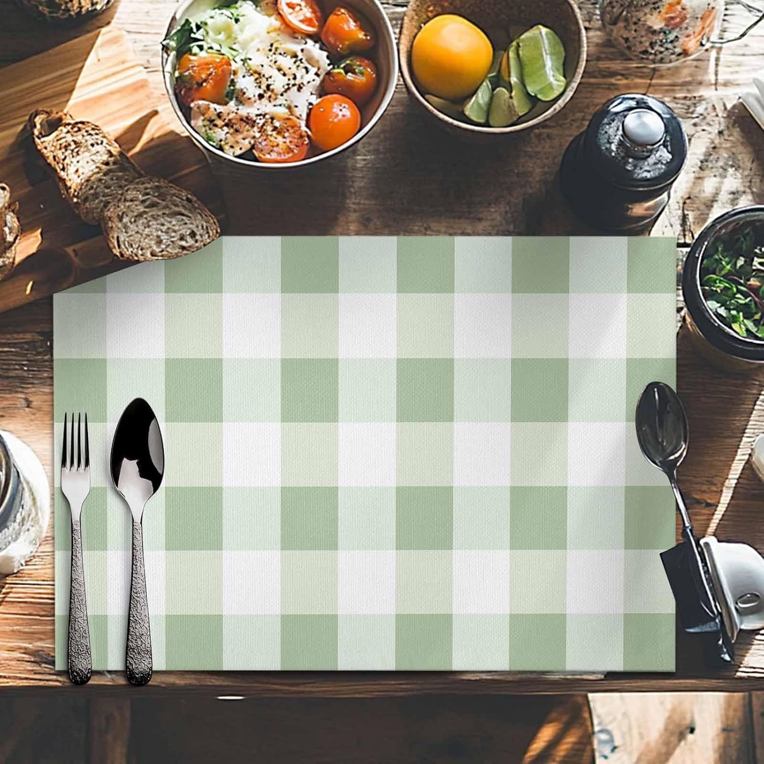 Premium Table PlacematsExperience the perfect fusion of luxury and functionality with our premium table placemats, meticulously crafted from soft polyester linen fabric.Ideal Practical DimensionsAvailable in 1/4/6 /8/12 pieces with sized 13"x19" placemats. Expertly designed to complement farmhouse kitchens, minimalist tablescapes, and upscale event venues. The timeless rectangular silhouette and curated color palette effortlessly update your dining aesthetics, adding character to casual family meals or holiday feasts.Why It Stands OutLuxurious addition to any dining set, our unique pattern print plate mats for dining table will guarantee to demand attention, adding an air of originality and finesse.Family can use this placemats to enhance their dining experience. The personalized touch can attract your guest and make their dining experience more memorable.Ideal for Party SettingsTransform meals into memorable moments across diverse scenariosWhether it's a daily family gatherings or a special holiday dining party, such as Christmas, Birthdays, Father's Day, Mother's Day, 4th of July Independence Day, Memorial Day, anniversary celebrations or Wedding celebrations, graduation banquet setups, hotel banquets, these personalized placemats can be customized to match the party theme. They add an extra element of charm to your party decor.Care InstructionsSpot Clean: Blot spills with a damp cloth.Refresh: Rinse under cool water and air-dry flatDeep Cleanse: Machine wash cold (gentle cycle recommended)