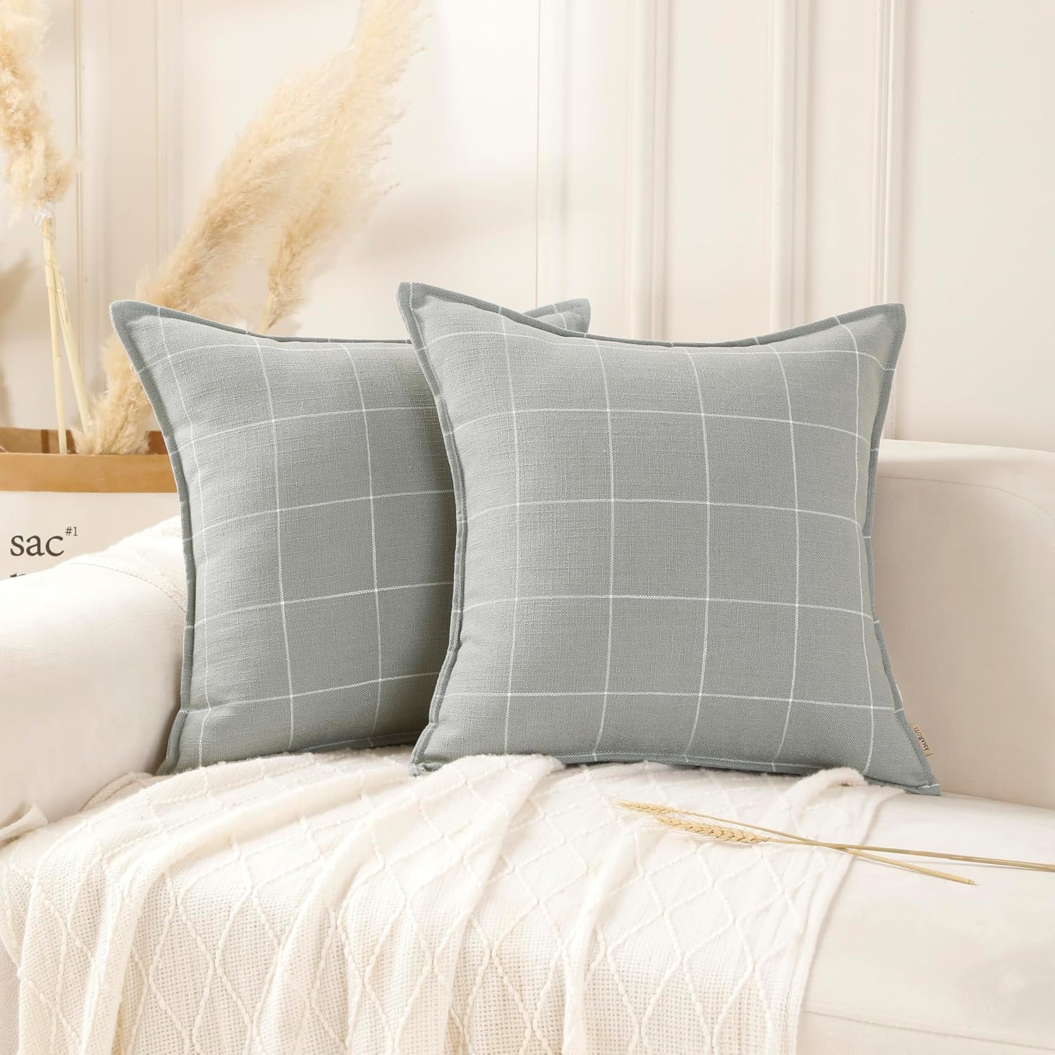 AMAROTI plaid pillow cushion in black and white plaid Bohemian on all sides with concealed zipper back Farmhouse linen pillow case, 22 x 22inches, black
