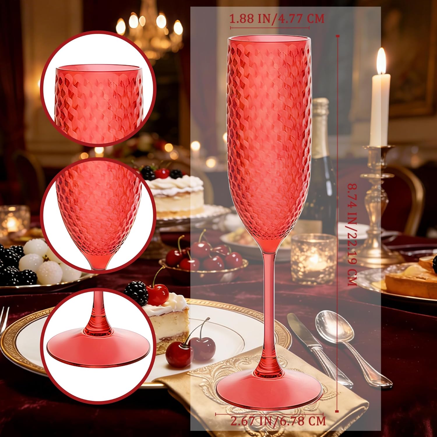 | Included Components | 48pc dark red flutes |