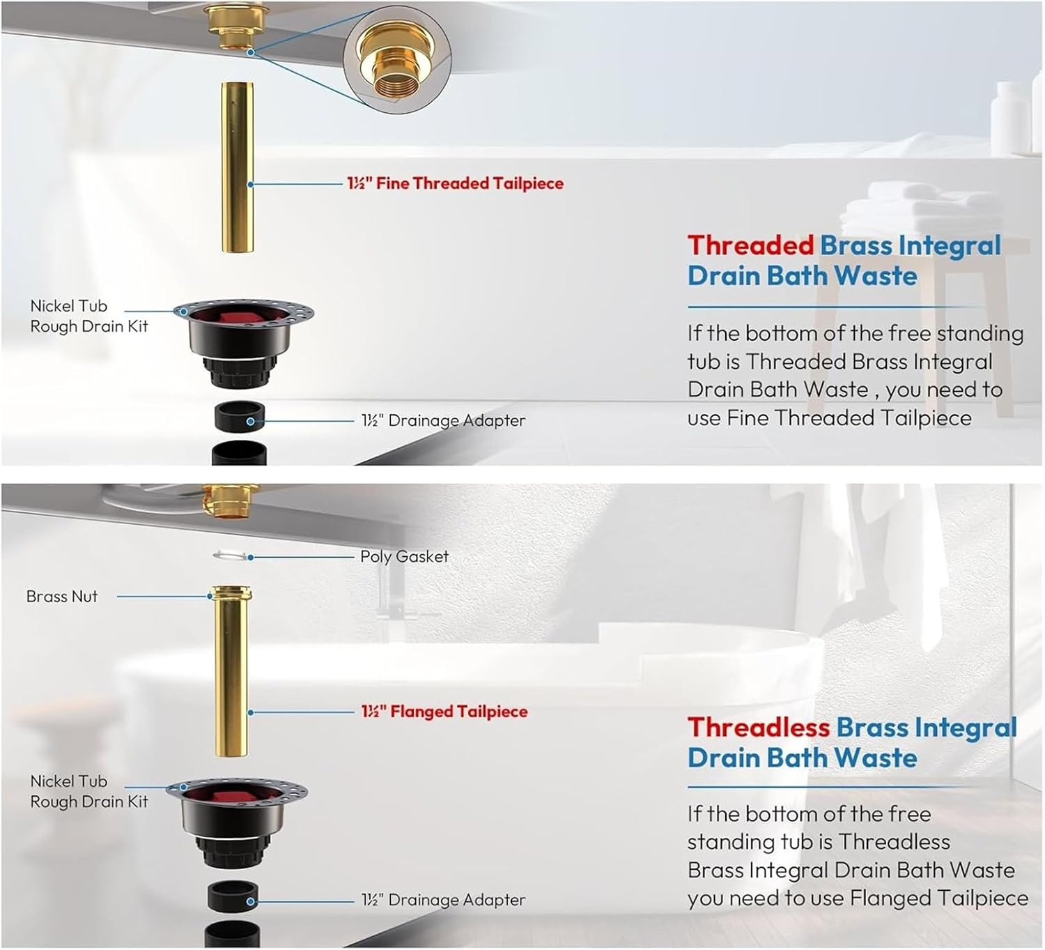 Practical Bathtub Drain Rough Set Bathroom Renovation Supplies Professional Plumbing Set Suitable For Multiple Tub TypesFeatures:Elevates your bathroom with the freestanding tub drain rough set, for a fit with various bathtub styles.Crafted from materials, this drain set offer longevity, ensuring drainage for your freestanding, floor mounted, or bathtubs.Suitable for homeowners undertaking bathroom renovations and professionals seeking a dependable drain systems, the set caters to both enthusiasts and expert installers.Designed for compatibility with array of bathtub installations, this set is perfect for residential bathroom upgrades as well as commercial settings like hotels and apartments.The tub drain set not only simplifies installation with its comprehensive component but also enhances the aesthetic appeal of your bathroom.Specifications:Texture: Plastic+MetalPart Number: Outer Diameter: Approx. 6.9inch(17.53cm)Package Includes:1 Set Freestanding Tub Drain SetNote:Please allow 1-2cm errors due to manual measurement.Due to the differences between different monitors, the picture may not reflect the actual color from the item.