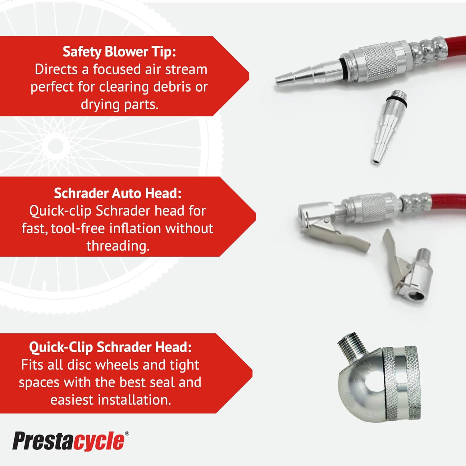 The Prestaflator is designed with a long-throw trigger valve. Use a light squeeze or brief, rapid shots to gently inflate Bike tires to your desired pressure over a few seconds. A full squeeze on the trigger provides maximum pressure for seating tubeless tires. The dial pressure gauge lets you follow your progress visually. Designed for MTB & Road tires with a wide range of pressure requirements.