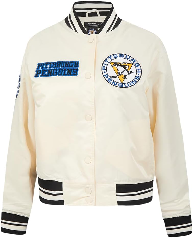 Celebrate the glory days of NHL with our Women's Retro Classics Satin Jacket. Embrace the vintage charm of historic logos and retro aesthetics. This officially licensed merchandise features chenille applique with satin stitch embroidery on a felt backing. Perfect for true sports enthusiasts who love the nostalgia of classic fashion. Add a touch of fan pride to your wardrobe with this timeless piece from Retro Classics.