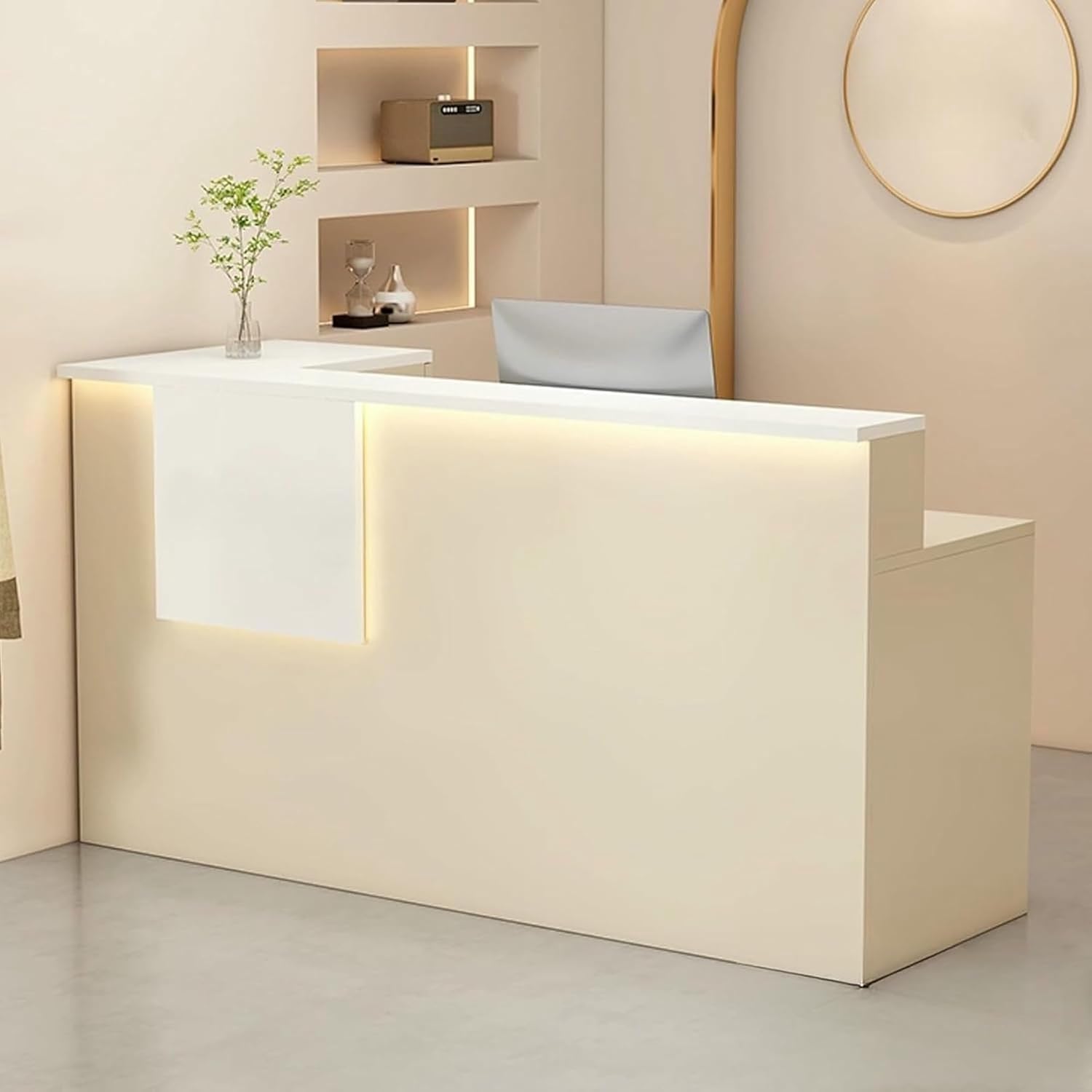 This is an attractive multifunctional reception room table that can be used as a counter, cash register, reception desk or cash register, available in a variety of colors and specifications.Classic color matching and creative splicing add highlights to the space sceneLocked drawer design locks privacy and makes office work more relaxed and comfortableThickened double countertop design, high countertop storage can be blocked, low countertop office workSpecificationsProduct Name: Cash RegisterColor: Yellow+Brown, Yellow+Gray, Yellow+White, White+Brown, White+Gray, WhiteMaterial: E1 boardLength: 100cm/39.3in, 120cm/47.2in, 140cm/55.1inWidth: 45cm/17.7inHeight: 90cm/35.4inProduct Style: Modern and SimpleApplicable Scenarios: Clothing Stores, Beauty Salons, etc.Product Includes: 1*Reception DeskAttention.1. Due to differences between monitors, there may be slight color difference.2. Due to the measurement method, measurement method and other factors, there may be slight error.