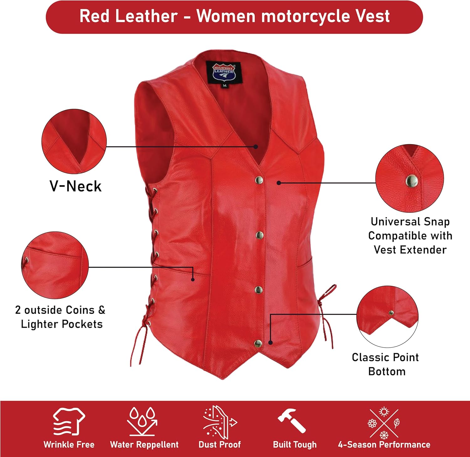 Every day is different, and this Highway Leather Vest for Women is designed to move with you. Made from soft, genuine leather, it gives you a sleek look without feeling heavy. The lace-up sides adjust easily, so you can wear it over light tops or layered outfits for the perfect fit. With sturdy snaps and two outside pockets, it’s both fashionable and practical. Inside, you’ll find spacious pockets to safely carry essentials like your phone, wallet, or keys. A smooth satin lining keeps it comfortable all day, while the plain back is perfect for adding custom patches or embroidery if you’d like. Stylish, functional, and versatile, this vest is the perfect choice for everyday wear, casual rides, or layering in any season.