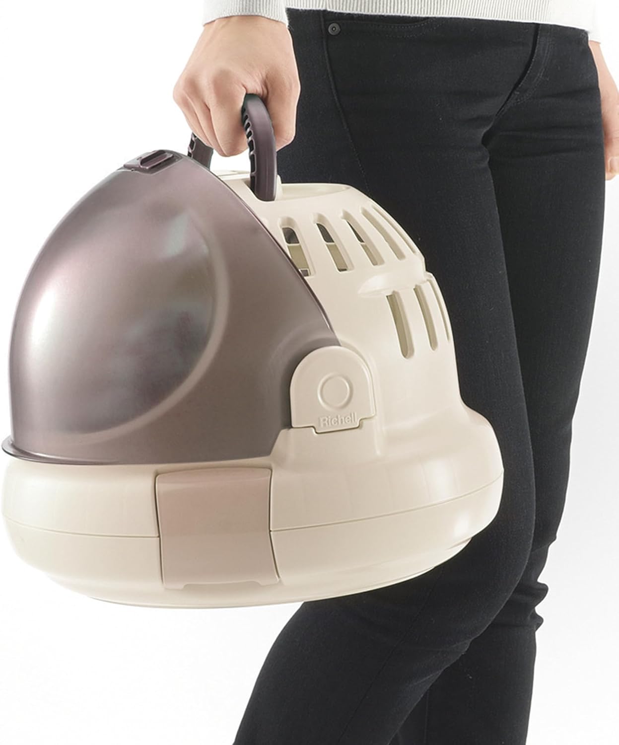 Richell’s Space Capsule Pet Carrier & Bed is a safe and stylish solution for taking pets along for a trip. This award winning carrier includes a clear window door that slides up to open, creating a wide space for easy loading of your cat or dog. The window door can be open/closed gradually and will stay in place until you are ready to close it. The door also features a lock to keep your pet secured. The top and base are attached with tool free latches for easy assembly. The carrier can be used with a car seat belt to keep your pet safe and secure while in a moving vehicle. Includes a rounded cushion for increased comfort. This functional work of art is perfect for small pets and is available in two colors.