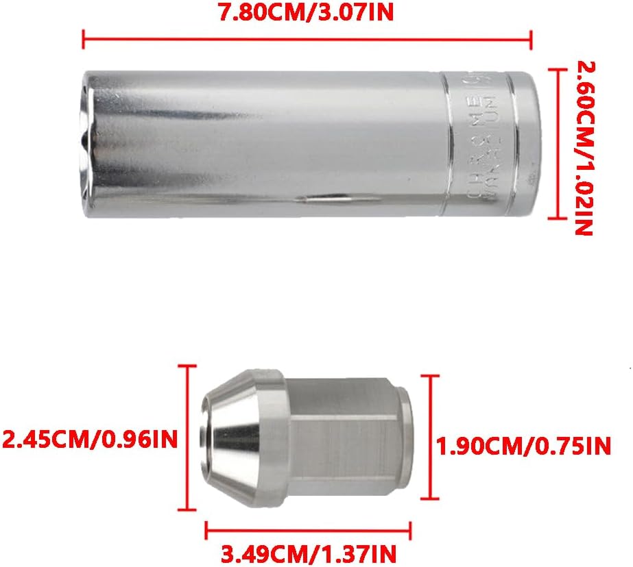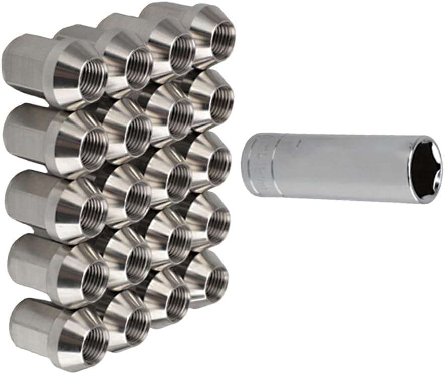 Specification:Condition: NewThread Pitch: M12x1.25Product Color: SilverMaterial: 304 Stainless SteelWheel Nut Size: 3.49*2.45CM/1.37*0.96INLock Nut Socket Size: 7.80*2.60CM/3.07*1.02INFitment:UniversalPackage Included:20*Stainless Steel Raceing Wheel Nuts1*Lock Nut Socket