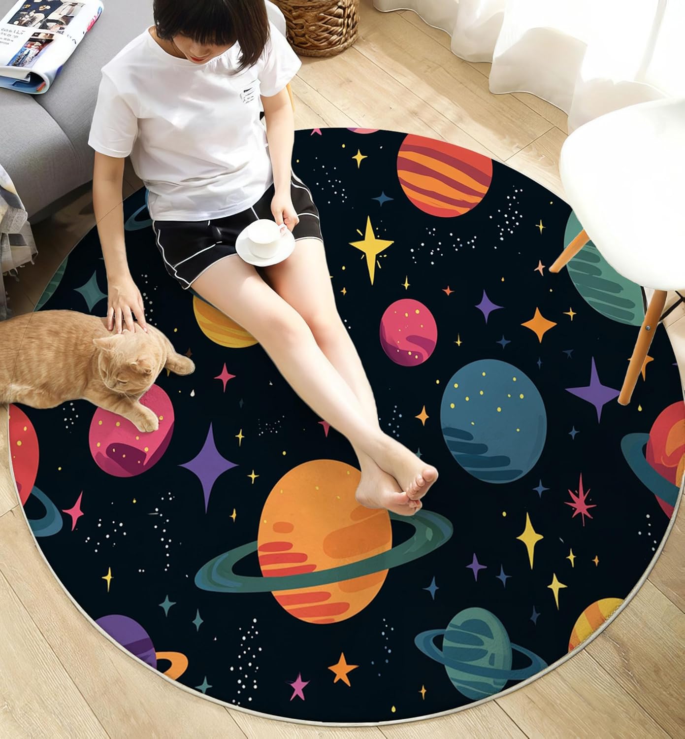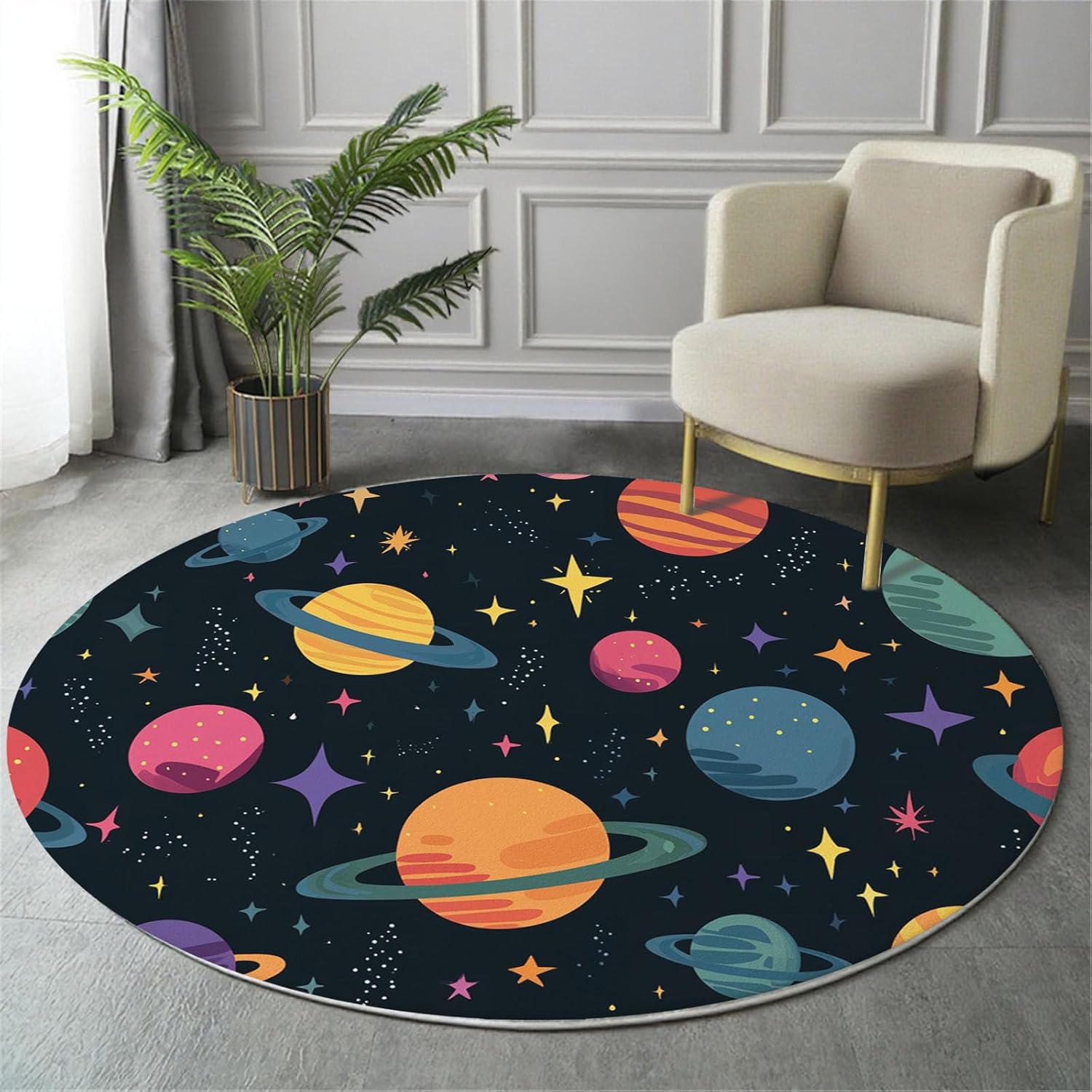 ✨ Welcome to Our Store!Refresh your home with our beautifully designed,high-quality round rugs.Soft,stylish,practical,they offer the perfect combination of comfort and elegance—bringing warmth to your everyday life✅ Product Specifications ● Bottom Material: Cotton thread + TPR anti-slip backing ● Available Sizes: Diameter 2' / 2'7" / 3' /4' / 5' / 5'3" / 6' / 6'6" ● Colour: As shown ● Suitable for: Living room,bedroom,hallway,nursery,study,dining room,more💡 Why Choose Our Round Rugs?✔️ Soft & Comfortable UnderfootCrafted from high-quality synthetic fibres,our round rugs offer a luxuriously soft texture.Whether you're walking barefoot or sitting on it,you'll enjoy exceptional comfort and a cosy,welcoming feel✔️ Non-Slip & SafeThe TPR and cotton thread backing enhances grip,keeping the rug firmly in place—even on hardwood,tile,marble floors.No more slipping sliding,perfect for homes with children or pets✔️ Machine Washable & Easy to CleanSpills or dirt? No problem. ➤ Simply vacuum,spot clean with a damp cloth,or machine wash (cold water &mild detergent). Let it air dry naturally for best results✔️ Versatile Home DecorElegant 3D-printed designs make this rug a stylish addition to any room.Use it as a Living room rug | Bedroom rug | Kids’ play mat | Dining area carpet | Entryway mat | Floor rug for nursery,study,or office Its round shape adds softness balance to your space, creating a warm and relaxing atmosphere.📦 Package Includes1×Round Rug (Size of your choice)🔔 Please Note●Our rugs are folded for packaging.Minor creases may appear but will flatten naturally within 1–2 weeks,or faster with gentle pressure●Manual measurements may vary by 1–3 cm. This is normal