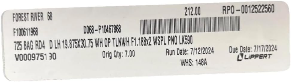 RV Trailer Camper Fifth Wheel Baggage Cargo Compartment 19 7/8 X 30 3/4 Access Door With Slam Latch. The color is off-white or almost like a very light gray but could easily be repainted to whatever color you would like. May have a few scuffs and scratches from being in storage but was never installed. Comes with one key. Opening dimensions are 18 1/8 X 29. Overall dimensions are 21 X 32 x 2 Your rough opening dimensions would need to be approximately 19 7/8 X 30 3/4.