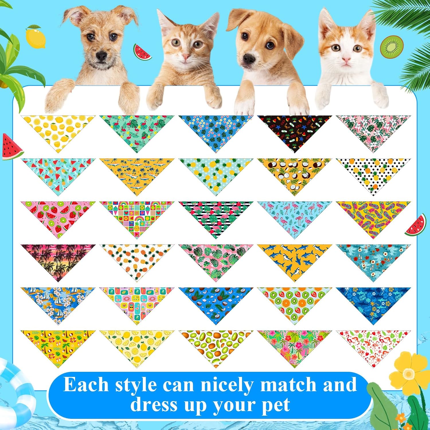 Features: Ideal gifts: Our summer bandanas for dog make an ideal gift for friends, family, or colleagues who love pets. They make for a thoughtful present that clearly reflects the recipient's love for their pets. Vibrant colors: The attractive colors add personality to your dog's look and increases visibility while out on walks or at the park. Specifications: Material: polyester Color: colorful Size: 16.4 x 16.4 x 23.2 inches Package includes: 120 x Dog bandanas Notes: Manual measurement, please allow slight errors on size. The color may exist a slight difference due to different screen displays.