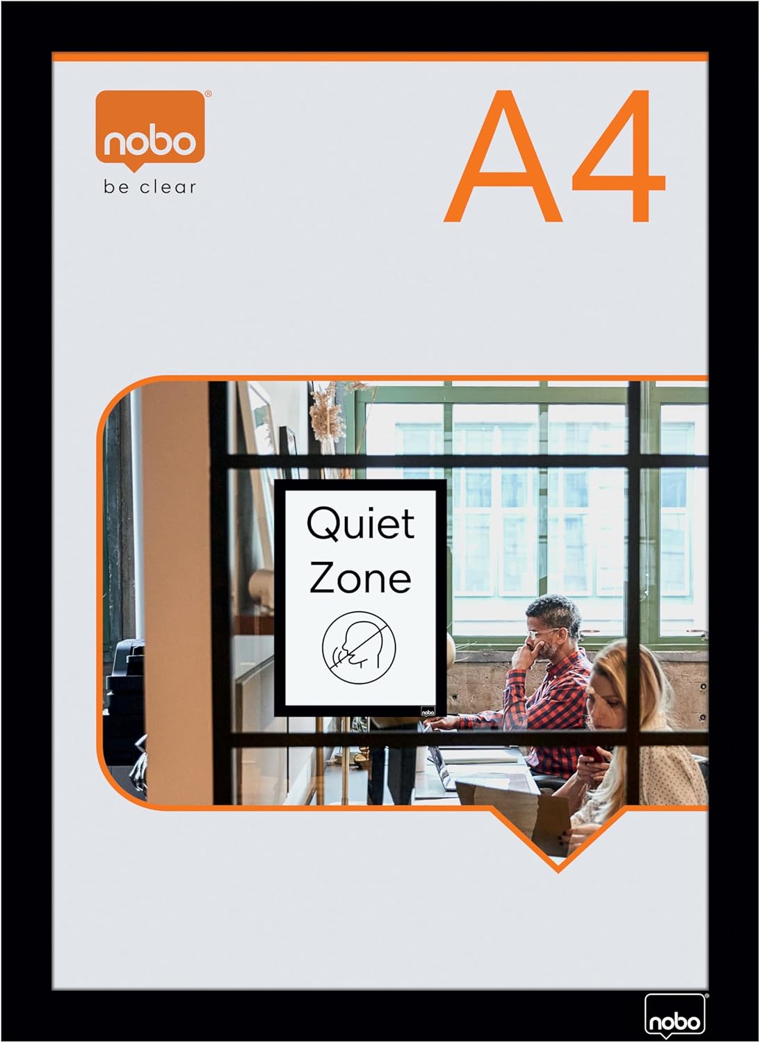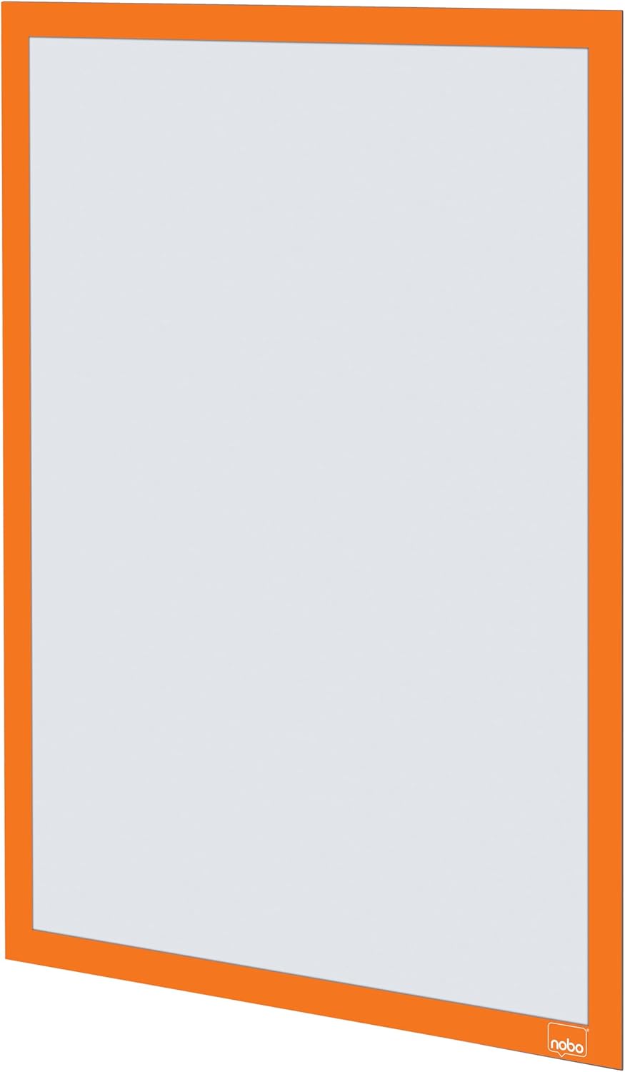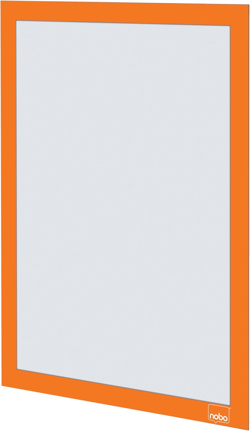 Self-adhesive magnetic poster frame for the secure display of posters, signs and information. Sign holder features a magnetic strip at the bottom of the frame to allow quick and easy content change and to keep pages secure. This magnetic poster frame attaches firmly to flat surfaces in either portrait or landscape format with its self-adhesive backer and the transparent matt cover helps protect content underneath and can be wiped clean. Display area A4. Pack of 2 orange poster frames.