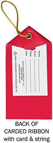 Made from quality satin and stamped with gold foil. Personalization is imprinted in gold foil. Size is 2" x 8" and comes with a card and string attached.