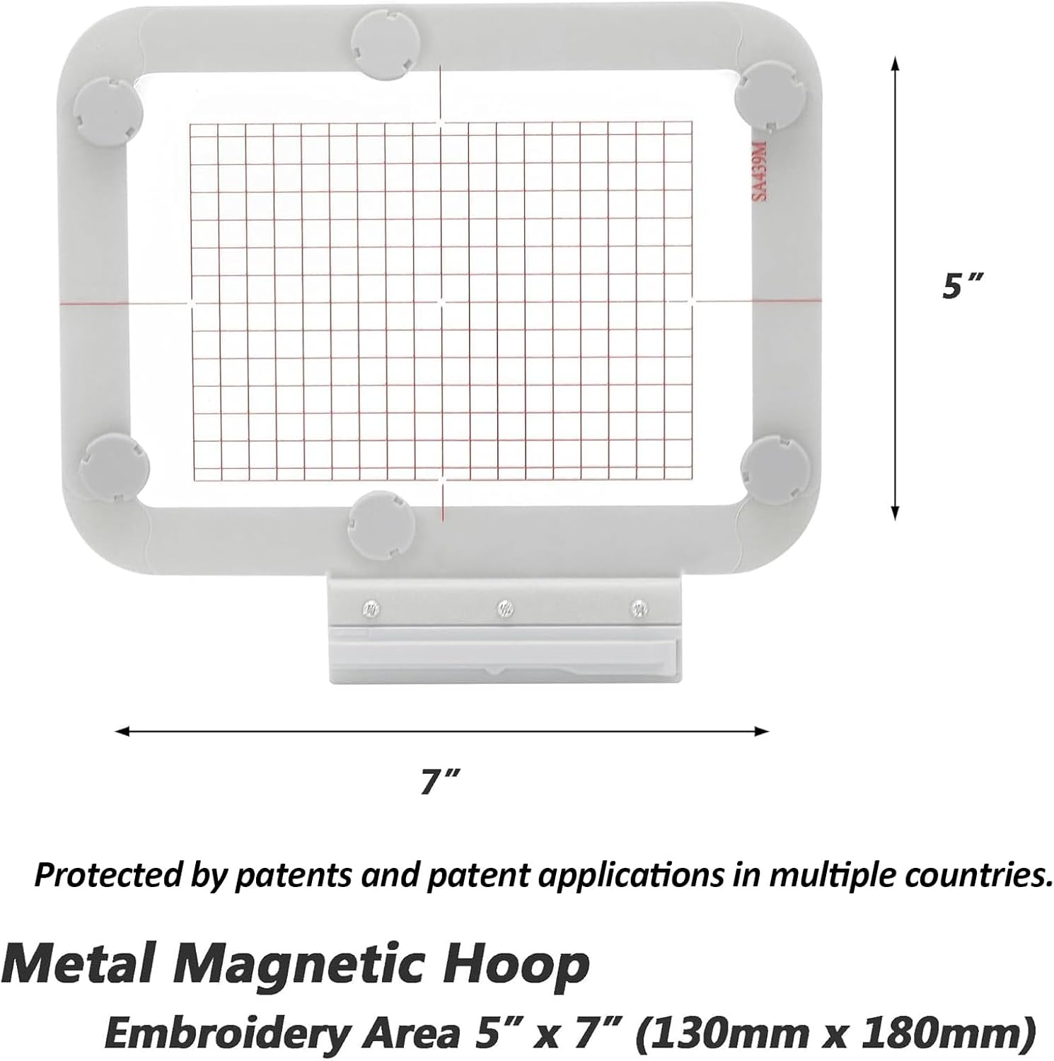 Streamline your Brother/Babylock setup with the Sew Tech SA439M, a metal magnetic hoop that delivers a precise 130×180mm (5x7 inch) square stitching field—ideal magnetic hoops for embroidery machine users who want faster, smoother hooping. The balanced magnetic hold keeps fabric smooth—even on thicker layers—while avoiding the over-tight clamping that can cause stretching or hoop marks. When a design calls for fine placement or color changes, simply reposition a few magnets to tweak alignment without removing the entire hoop, conserving stabilizer and shortening setup time. The included grid template makes centering and rotation straightforward for quilting blocks, continuous borders, pockets, and bag panels. A durable metal frame offers long service life and easy cleaning so you can stay focused on creative work rather than maintenance. Compatibility: Brother NQ1700E NQ1600E NQ1400E NQ3550W NQ3550Q NQ3600D NQ3700D NQ575 NQ575PRW NQ700 NQ700PRW NQ900 NQ1300, Luminaire XP1 XP2 XP3 Stellaire XJ1 XJ2 XE1 XE2 Essence VM5200 VE2300 Dream Machine 2 XV8550D DreamCreator XE VM5100 DreamWeaver XE VM6200D V3 V3SE V3LE V5 V5LE V7 V7LE Quattro 6000D Quattro 2 6700D Quattro 3 6750D Duetta 4500D Duetta 2 4750D Innov-is 1500D 2500D 2800D 4000D 5000 6700D NV800E NV850E NV870 NV870SE NV880E NV1040SE NV1100 NV1300 NV1800Q NV2600 NV2650D NV2700 NV4500D NV4750D NV6000D NV6750D VE2200 VF1 VQ2 VQ4 VQ2400 VQ3000 and Baby lock Solaris Vision Solaris 2 Solaris Meridian 2 Altair 2 Aerial Meridian Altair Vesta Flare Pathfinder Destiny II embroidery machines. This is a dependable magnetic hoop for Brother NQ1700E and a must-have Brother magnetic hoop / Brother magnetic hoops upgrade for daily projects. Packing list: magnetic embroidery hoop, grid template, 6 strong magnets.