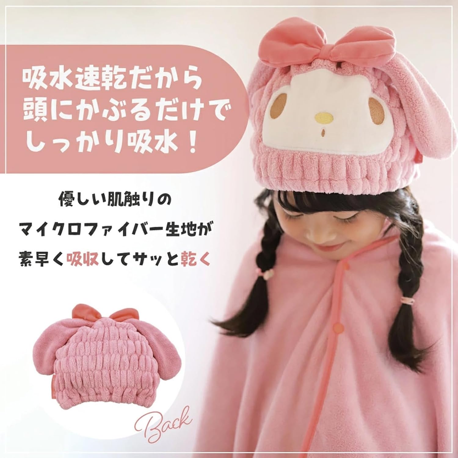 Microfiber fabric is soft to the touch and absorbs well. Size (W x L x H): Approx. 9.1 x 6.7 inches (23x17cm) Moisture Wicking Towel Cap Cute character towel cap