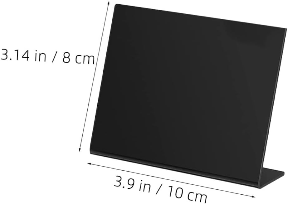 Package List 12 x boards 1 Characteristics -Product Info:Desktop display blackboard -Material: Acrylic. -Made of high-grade acrylic material, it is strong and , wear-resistant, not easy to deform and break. -It can be used as an elegant restaurant menu stand, wedding or party table card stand, your desk or shop advertisement, etc mini blackboard signs with stand. -Comes with a pen, it is convenient for you to write, which can bring you great convenience tabletop chalkboard signs. -A and scratch-proof film is attached to the surface of each board. Take it out patiently before use or when you receive it mini black board signs. -Our classic acrylic stand is very easy to clean and maintain, can save precious time party table decorations.Goods DescriptionDesktop Message Blackboard Portable drawing board with compact size, and practical.mini blackboard signs with stand Are you looking for a multipurpose blackboard? This product will be the for you.wedding message board Made of premium acrylic material, lightweight and for long term use