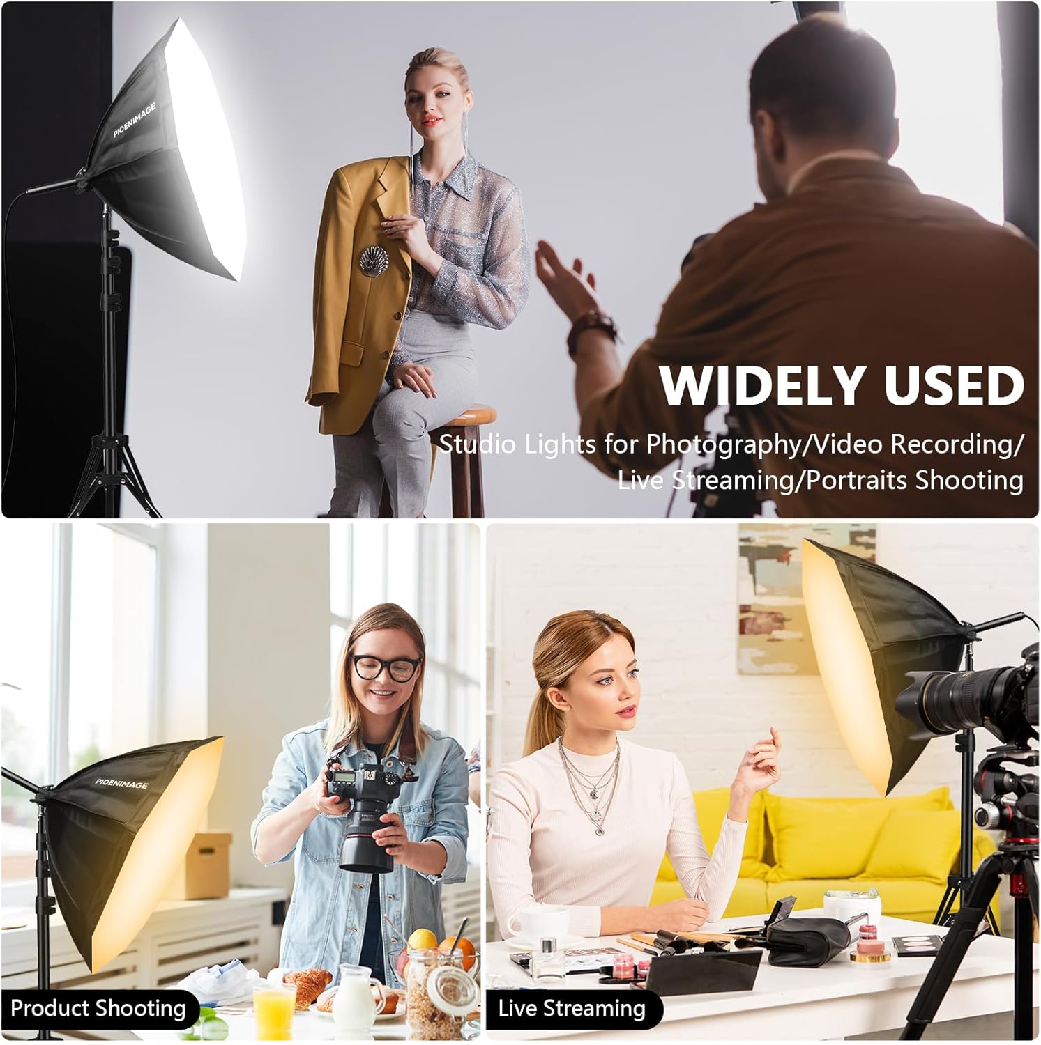Softbox Lighting Kit, Softbox Photography Lighting Set with 21.6in x 21.6in Octagonal Softbox, Light Tripod, 85W 2700K-6500K LED Bulb, Remote, Studio Lights for Photography, Video Recording