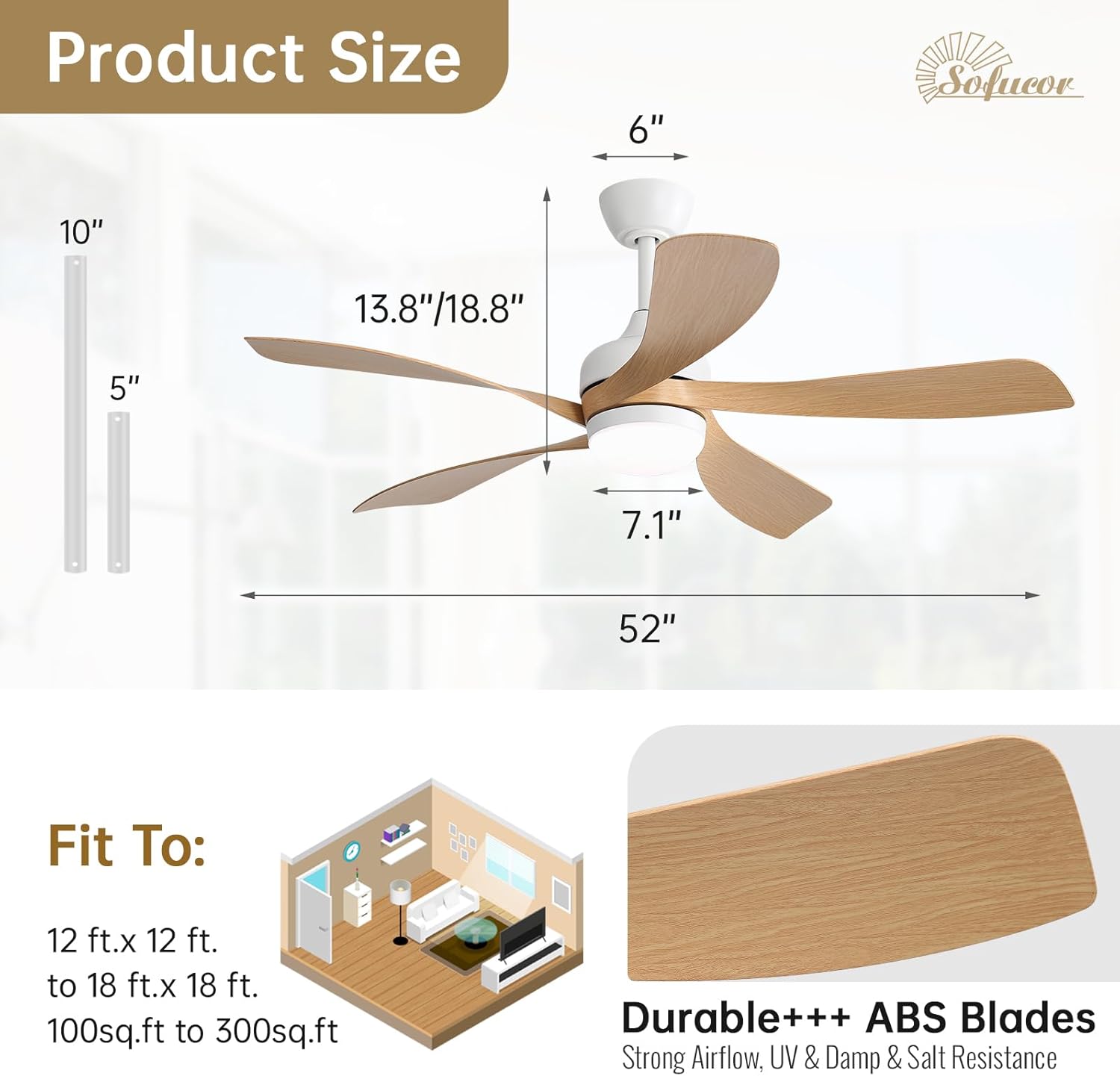 | Included Components | DC Motor, Downrods(5/10inch), Fan Blades, LED Light, User Manual, Remote |
