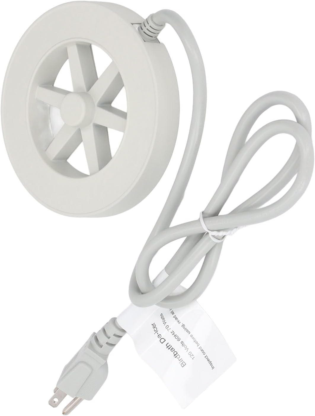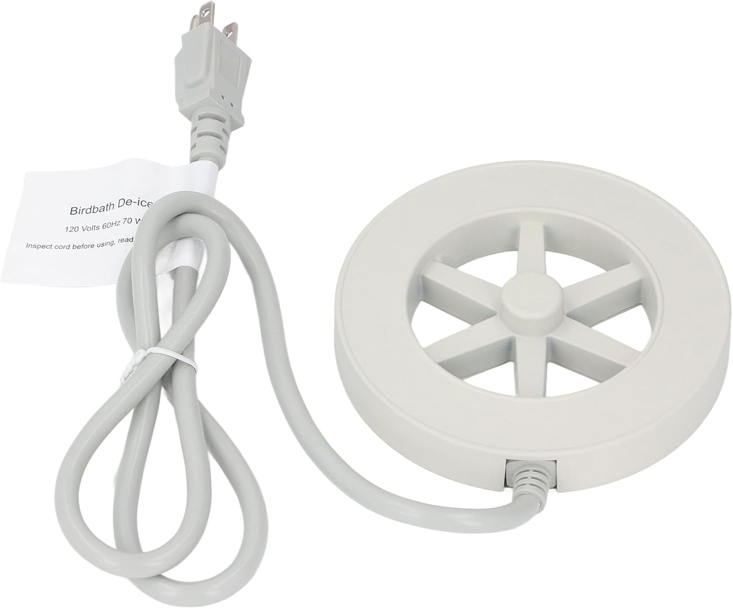 Specification: Item Type: Bird Bath Deicer Material: Aluminum Rated Current: 0.58A Rated Temperature: 200℃ Insulation : ≥100MΩ Diameter: Approx. 3.0mm / 0.12in Length: Approx. 0.57m / 22.44in Power: 70W Cut off Temperature: 43±5℃ Recovery Temperature: 25±5℃ ON/OFF Mode: Normally Closed Level: IP00 Lifespan: ≥100000 : ≤50mΩ Insulation : ≥100MΩ Shell Material: Die cast Aluminum Treatment: Spray Painting Processing Technology: Potting (Black Resin) Cutoff Temperature: 38±5℃ (Test Conditions: Ambient Humidity: 25℃, 3L Room Temperature Tap Water) Recovery Temperature: 35±5℃ (Test Conditions: Ambient Humidity: 25℃, 3L Room Temperature Tap Water) Maximum Power: 70W How to Use: Plug the product into the power source and place it directly into ice water or with ice cubes. The product will heat up until the water reaches a certain temperature, then it will stop heating. When the water temperature drops, it will heat up again, maintaining a constant temperature within a certain range. PackageList: 1 x Heater 1 x Instruction Manual Noti
