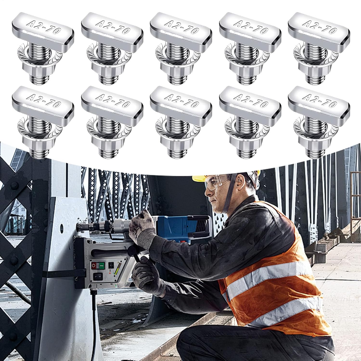 Corrosion-resistant T Slot Bolts provide precise alignment and smooth operation in industrial environments. Perfect for heavy duty applications, these screws support workbenches, automotive roof racks, and factory equipment. Versatile hardware is key to furniture construction, solar panel installations and door mechanisms. Designed for rail systems, the screws ensure safe installation and efficient maintenance in construction projects. A reliable choice for diverse tasks that demand durability and accuracy. Budget: Product Name: Stainless Steel T Type Screws Material: stainless steel. Product size: as shown Weight: M8X20 about 200g/set, M10x25 about 300g/set Packing size: about 13x9x3cm/5.12x3.54x1.18inch Packing list: 10* T Slot Bolt Set Note: Due to different lighting and screen settings, the colour of the item may be slightly different from the picture. Due to different manual measurements, please allow 1-2 cm size difference.