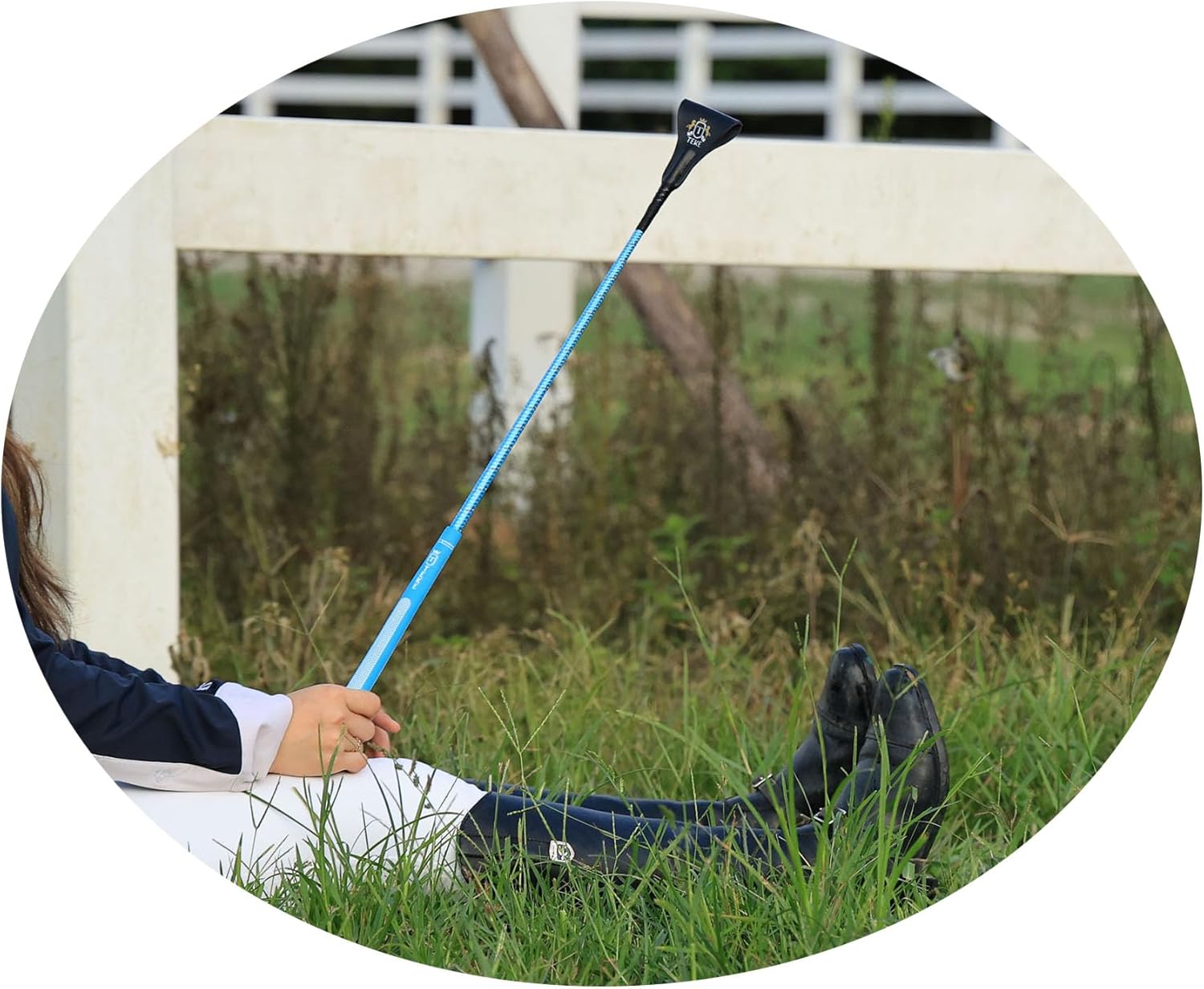 The T TEKE TWINKLE horse riding crop is a stylish English equestrian whip that is handcrafted with quality and combines many elements to show your lifestyle. It features a fishtail slapper in thick genuine leather, a vibrant color shaft with reflex yarn spiraled, and an exclusive oval golf handle made of mixed nanometer rubber that provides great hand grip function. It has a high recognition appearance when you take it for a ride. It comes in 24” with several colors and makes for a great gift for family members, lovers and best friends: Navy for father, blue for son, pink for mother, lavender for daughter.