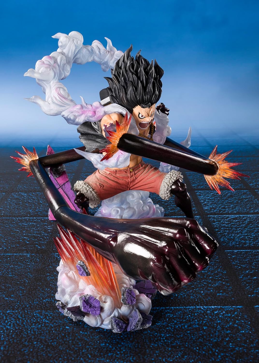 From the CHOGEKISEN: EXTRA BATTLE series comes Monkey D. Luffy in Gear Fourth form!Translucent parts are used to heighten the impact of this dynamic fixed-pose figure. It was carefully sculpted and engineered to capture all of the on screen action in an incredible, immersive display. The climax of Luffy's long battle with Katakuri takes form on your tabletop![Set Contents]Main bodystandThe product box will have a Bandai Namco warning label, which is proof that you are purchasing an officially licensed product.