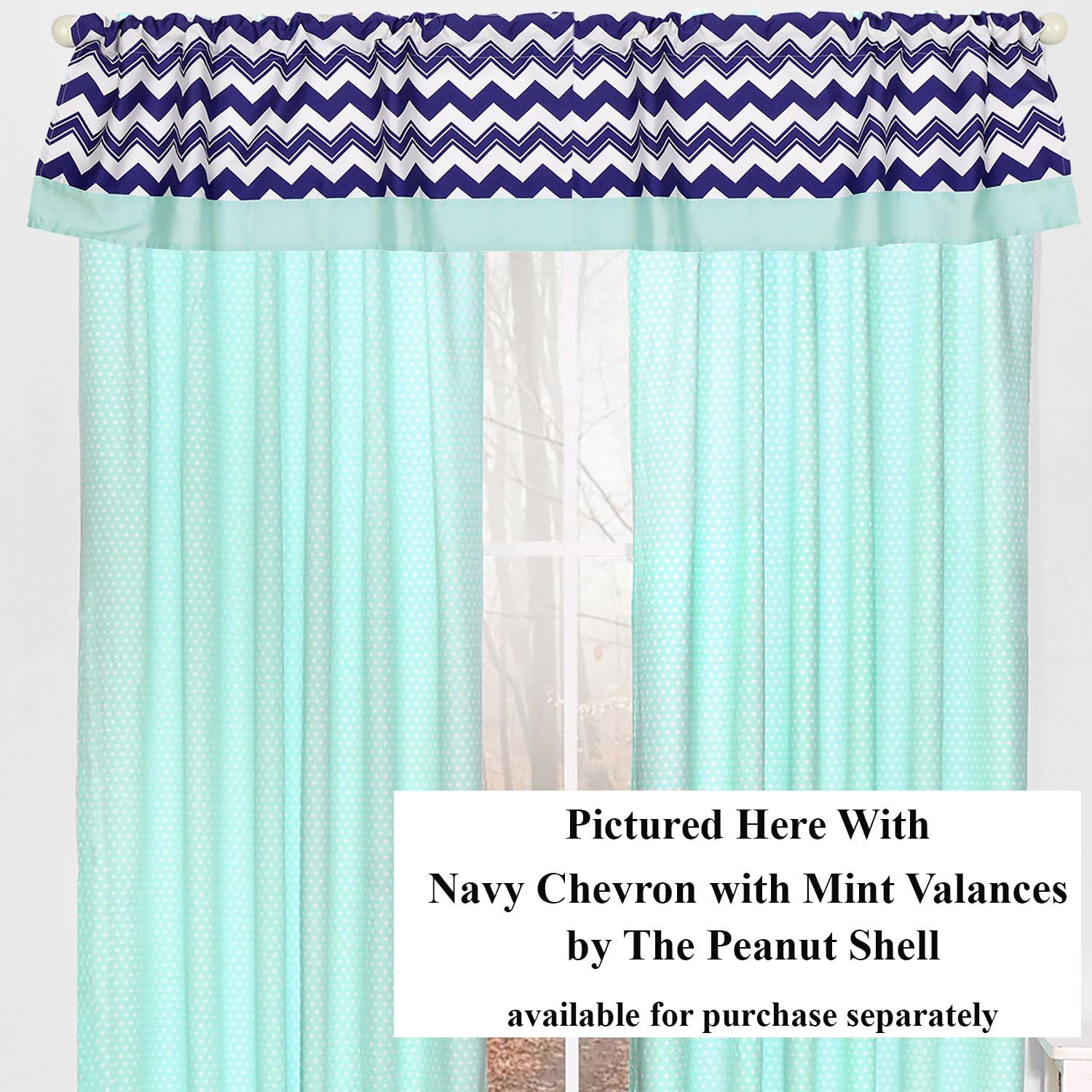 This pair of window panels from The Peanutshell features a classic dot in mint and white with a blackout lining. The panels hang with a 3" rod pocket or back tabs and accommodate a rod up to 2.5" in diameter. Panels are sold as a pair and each measure 42" wide by 84" long.