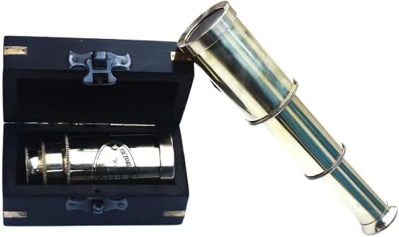 Rediscover the allure of seafaring exploration with THE VINTAGE VENUE Brass Nautical Spyglass Telescope, a beautifully handcrafted piece that merges form and function in one elegant package. Inspired by the age of sail, this 15-inch telescope is made from premium solid brass with a genuine leather-wrapped handle, giving it the vintage appeal of an 18th-century pirate spyglass. Designed to telescope smoothly between 5 and 15 inches, this monocular is fully functional and capable of actual magnification—perfect for both decorative and practical use. Whether displayed in a study, on a bookshelf, or used as a prop for historical reenactments, this telescope is a conversation starter. The accompanying premium leather case enhances its charm and makes it an exceptional gift for collectors, history enthusiasts, or anyone who appreciates vintage nautical décor. Ideal for birthdays, Father's Day, anniversaries, corporate gifting, or holiday presents, this antique-style telescope is more than a decorative item—it’s a timeless statement of elegance and craftsmanship.