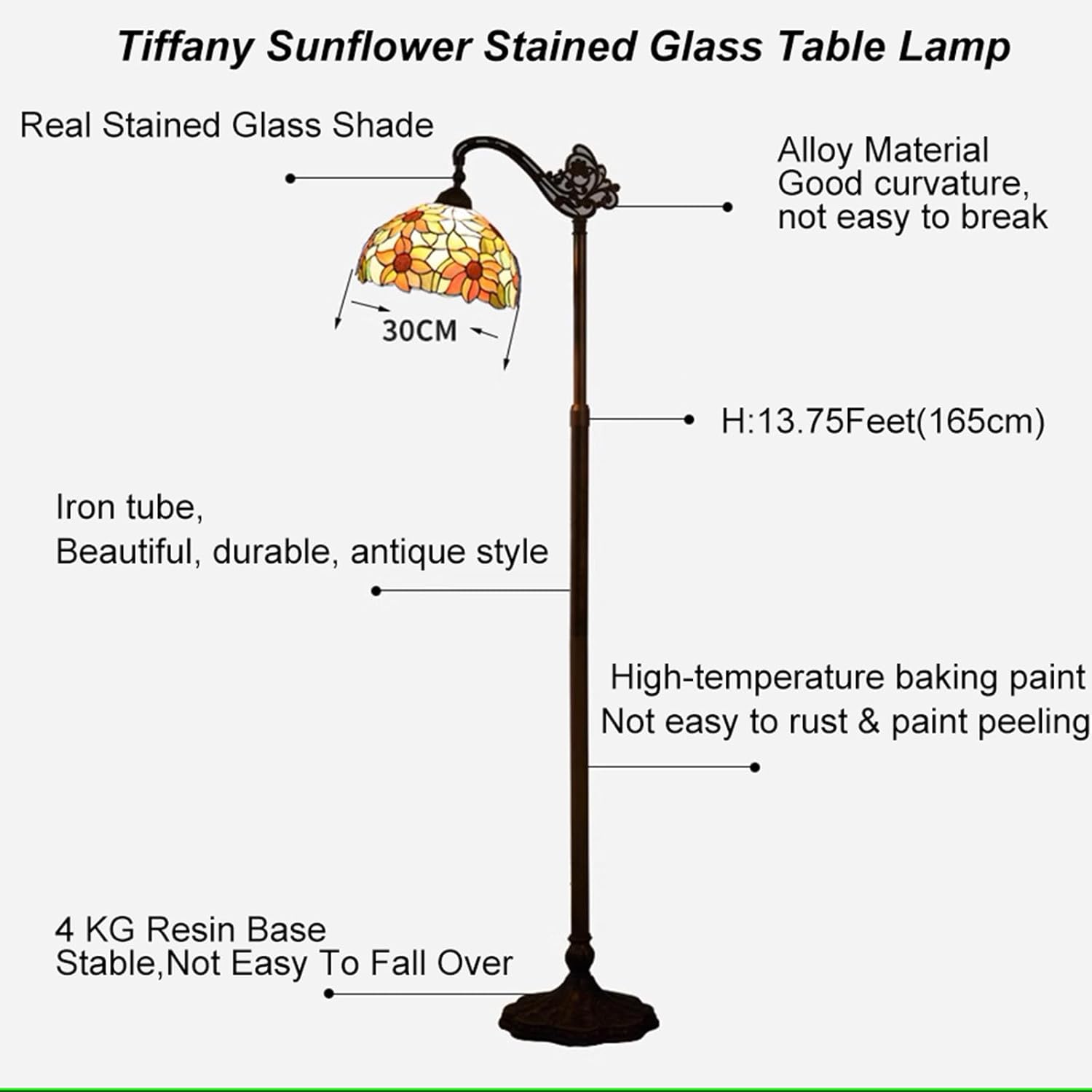 | Additional Features | 3-Way 3-color Temperatures, Real Stained Glass Hand-made Shade, Study Heavy Resin Base, With LED Bulb Included Energy Efficient |