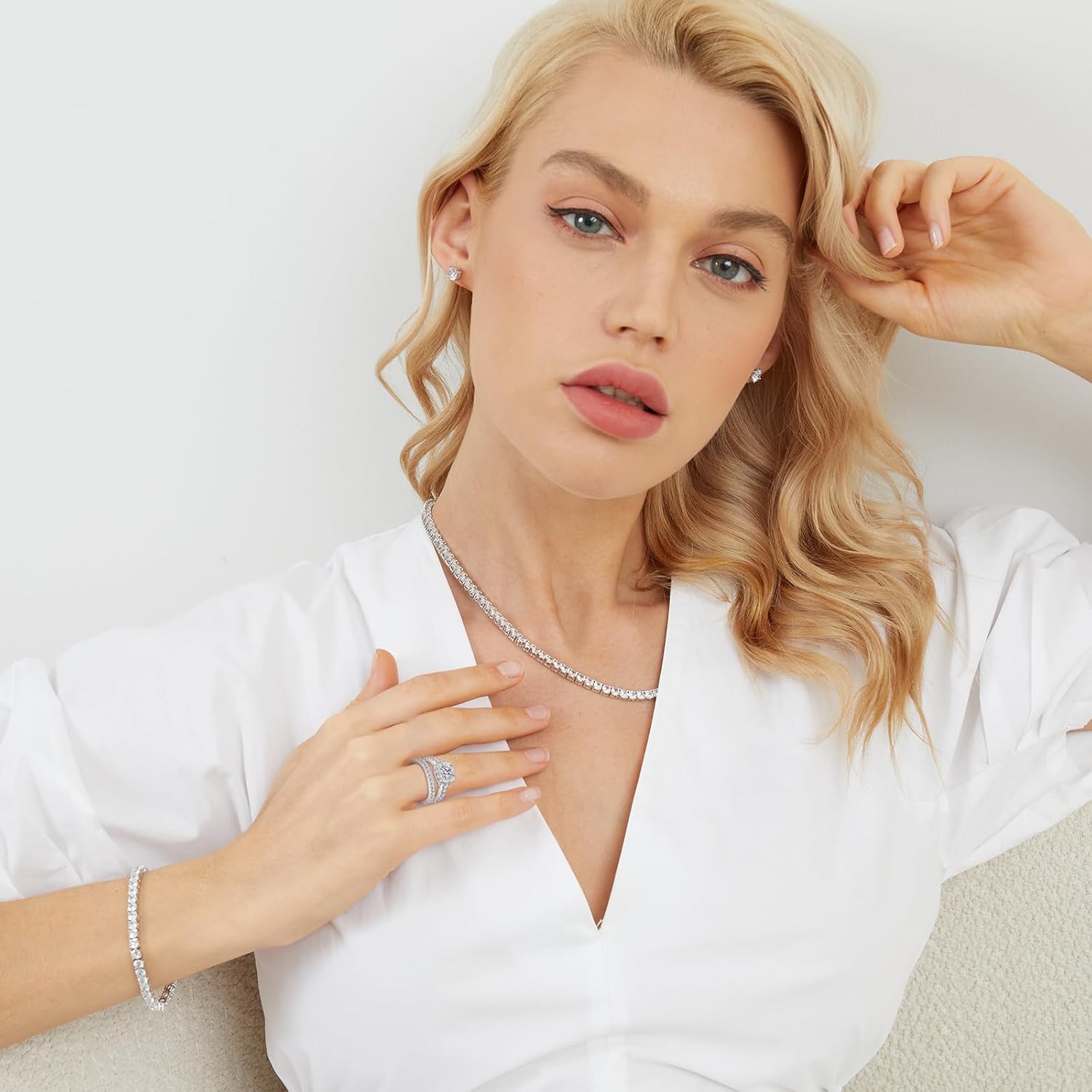 TIKJE 2 in 1 Engagement Rings Set 925 Sterling Silver 1 Carats Artificial Diamond Wedding Band Silver Cubic Zirconia Bridal Promise Ring for Women Size 6-8