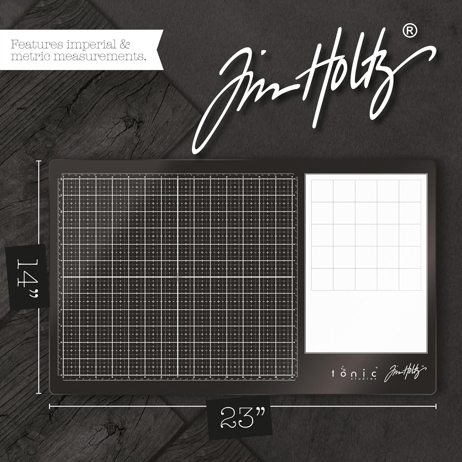 Tonic Studios Tim Holtz Glass Media Mat- The 12”x 14” measuring grid features imperial and metric measurements. The white 7. 5”x 11” mixing palette area, complete with a durable non-stick mat, is ideal for preparing wet mediums. Use with TNC1915 Replacement Non-Stick Mat and TNC2124 Media Tool Set, both sold separately.