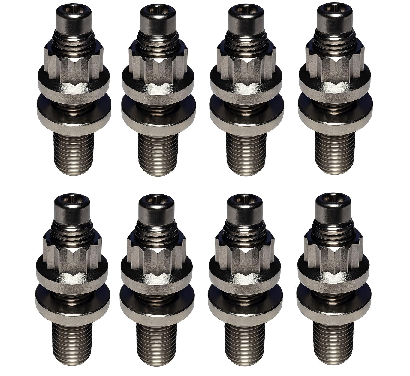 M10x1.25x45mm(1.75in.) length. Ti6Ai-4V studs, 12pt nuts and washers Titanium studs can fit many different applications, commonly used for exhaust or intake studs. Order the exact quantity you need for your project! This M10x1.25mm titanium stud is designed for high-performance applications, offering superior strength, corrosion resistance, and lightweight durability. It withstands extreme heat and vibrations, ensuring a secure, long-lasting fit. Ideal for performance builds, racing applications, and turbocharged engines.