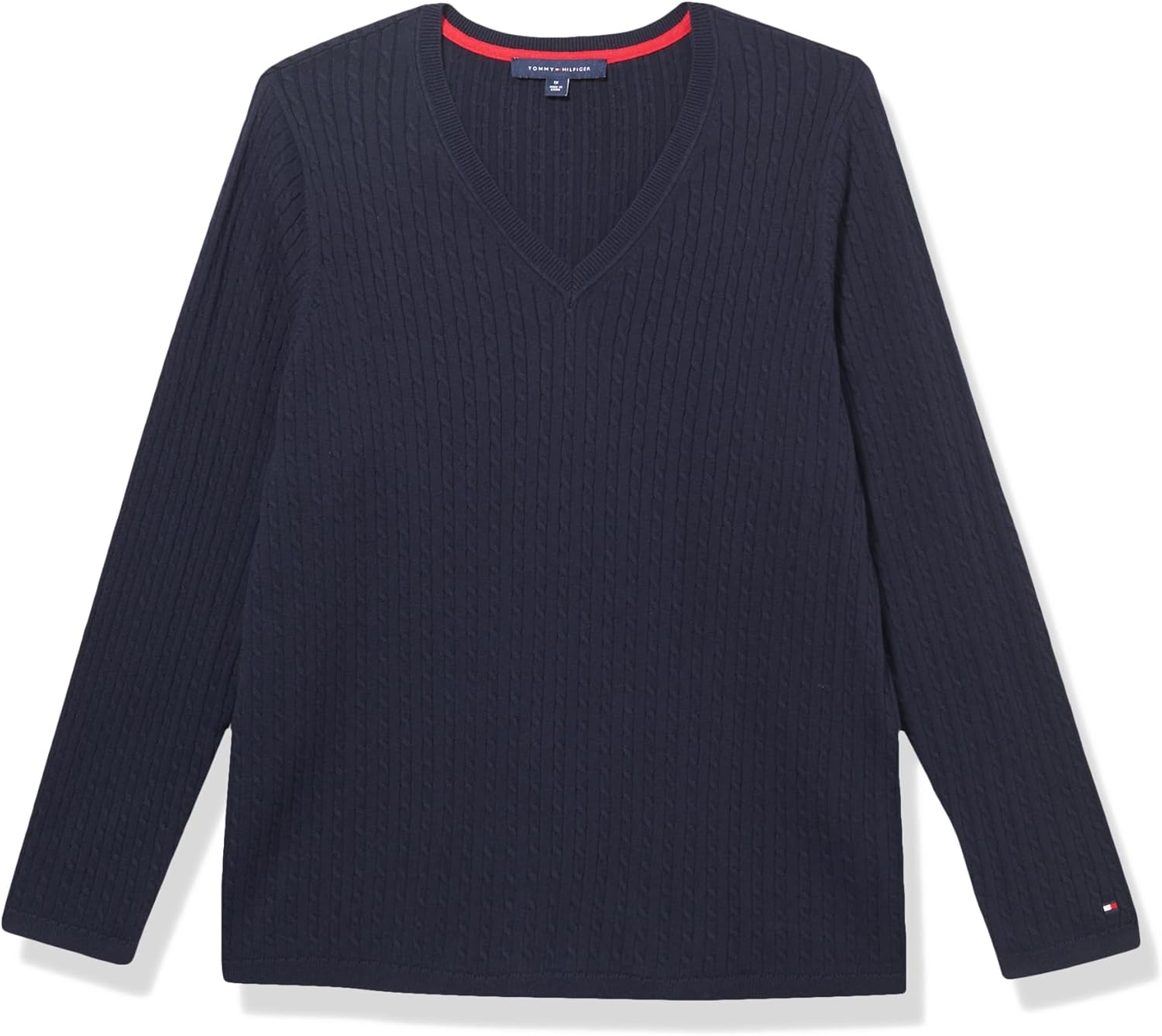 This Tommy Hilfiger Women's Sportswear Sweater is a Long sleeve pullover cable sweater with v-neckline