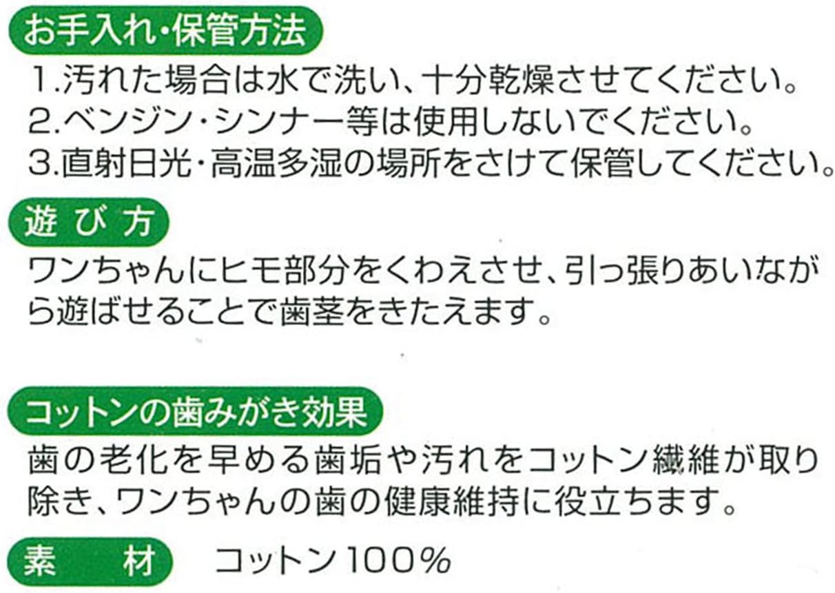 It is a dental toy (for dogs) that can remove tooth dirt and plaque by chewing. It promotes circulation by massage effect on the gums. Washable. M size which is suitable for medium size dogs. Country of origin: Vietnam. Petio Corp. is a Japanese company that manufactures and sells pet products such as pet foods, toys, care products, sand and sheets for pet. The brand name "Petio" was born as a coined word utilizing the word "Pet" and the sound of the suffix (-ino) that expresses a small adorable thing used for Italian "Bellino (lovable)" and "Carino (lovely)". "Petio" contains a message that "Pet is weak and small for human beings", a message that should not be forgotten, and idea that "Pet is an important existence that teaches us kindness, warmth and strength of life as a member of the family." Products manufactured and sold by Petio Corp. include foods, snacks, toys, walking tools, care products, toiletries, meals goods, clothes, houses for dogs and cats, as well as various foods and goods for insects. At the Himeji Factory, we obtained certification for quality management system standards - ISO 9001: 2008 and environmental management system standards - ISO 14001: 2004. The sanitary condition comparable to the food factory is kept. Even at overseas partner factories, quality control is performed on an equivalent basis. In the final process, we check the contamination of metal pieces with a detector. We also check to ensure that nonstandard products are not circulated. A traceability system is also introduced for each lot. Samples are kept and quality maintenance status after a certain period of time is also inspected.