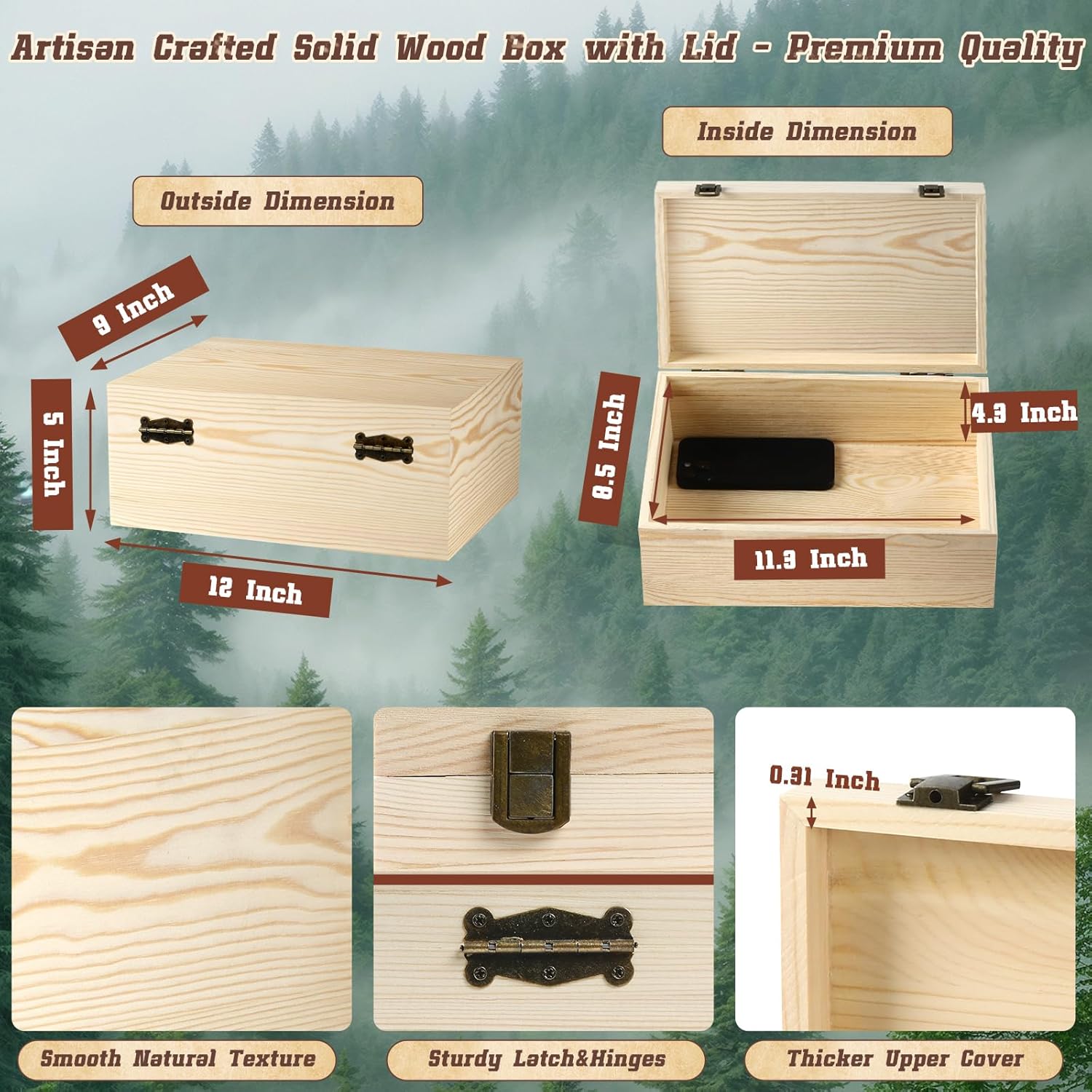 | Other Special Features of the Product | Lightweight, Portable, Unfinished Wood Craft Box for DIY & Boho Decor, Versatile Multi-Purpose Use, Wooden Boxes with Hinged Lid |