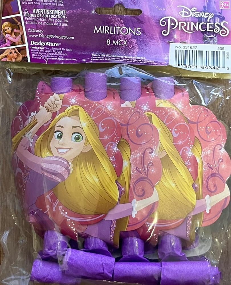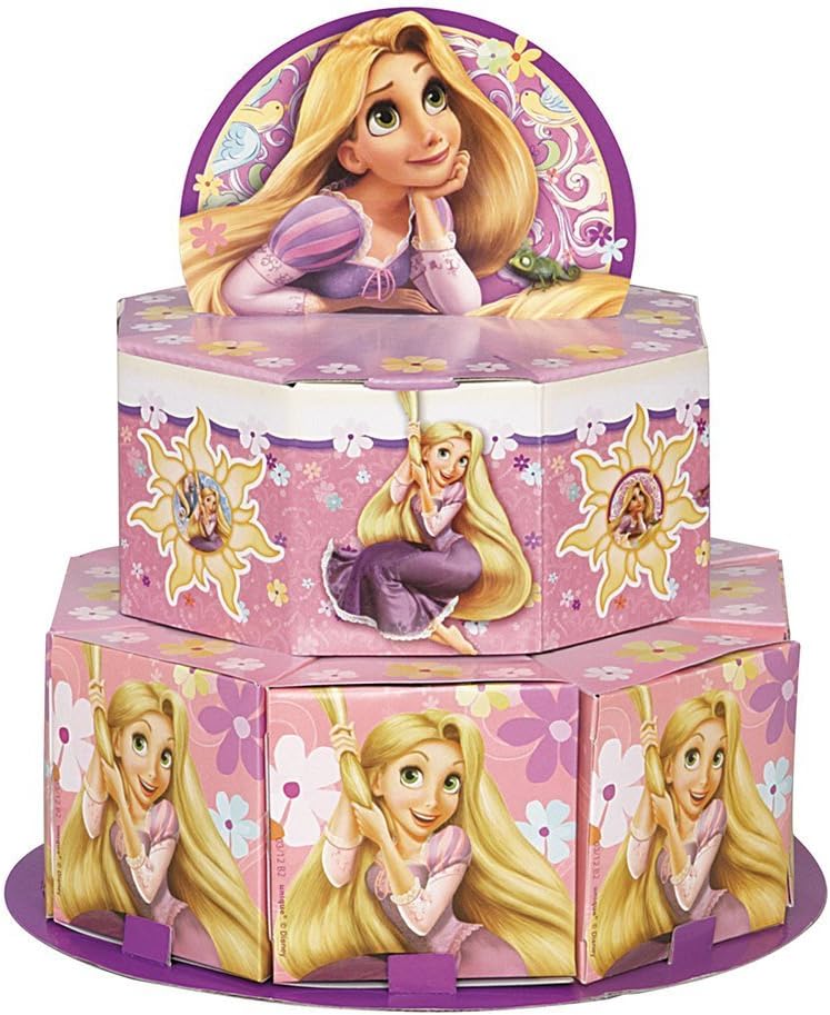 Disney Tangled Rapunzel Princess Birthday Party Supplies Bundle includes 16 Lunch Paper Plates 9", 16 Paper Napkins 2-Ply 5", 1 Plastic Table Cover 54" x 96", 1 Favor Boxes Centerpiece (8 Mini Favor Boxes put together 1 Centerpiece), 16 Party Blowouts, 1 Dinosaur Sticker sheet.