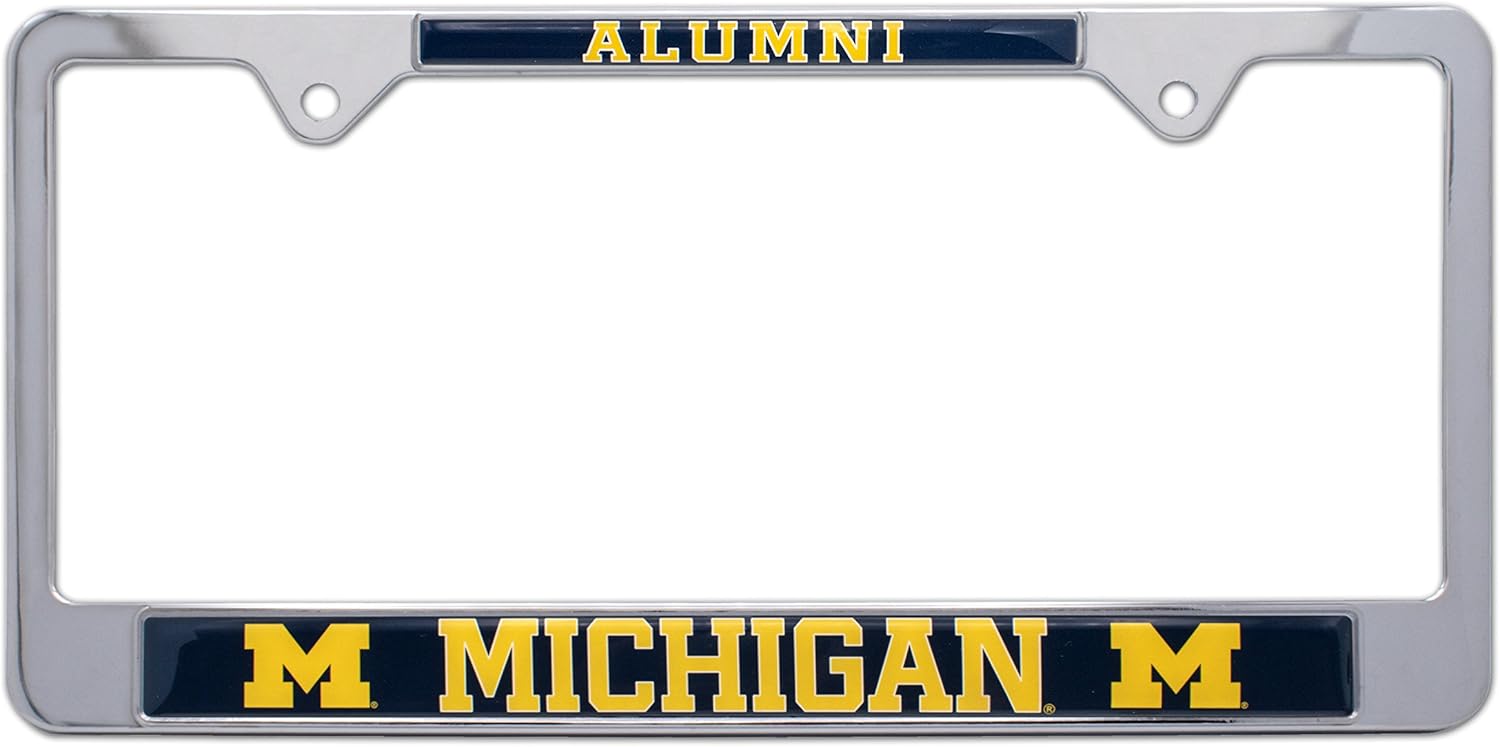 Officially licensed - University of Michigan “Wolverines” shiny chrome license plate frame by Elektroplate. All-metal (NOT plastic) frame with a shiny chrome finish, and full color UV-protected domed inserts that are Made in the USA. All Elektroplate license plate frames are comprised of a chrome-plated metal finish made to withstand harsh outdoor conditions. This shiny chrome frame will look brand new for years to come.