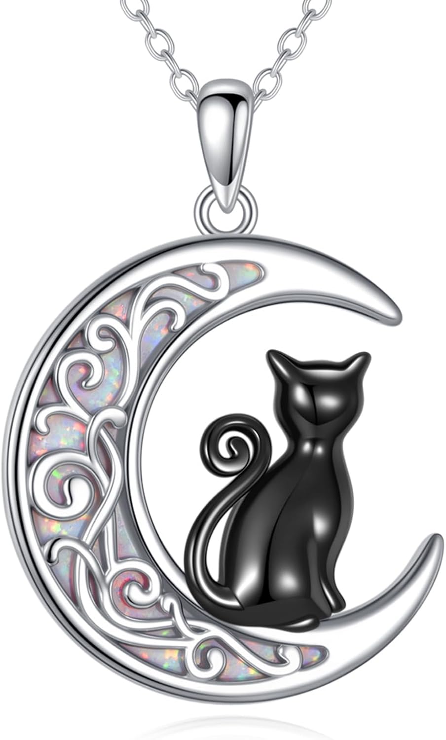 URONE Cat Necklace 925 Sterling Silver Cat Pendants Necklace Animals Jewelry Gifts For Women