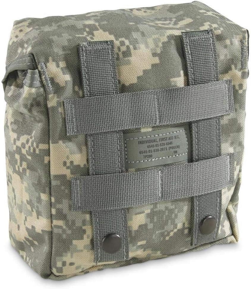 This GI Individual First Aid Kit Pouch, also known as an IFAK Pouch, has a compact design, making it easy for you to take it with you wherever you go. It is MOLLE compatible with two straps on the back, allowing for secure attachment to your belt or rucksack. This pouch also features a separation wall for better organization. The pouch's snap-fit buckle ensures that its contents remain fastened inside and allows for easy opening when access is needed. The versatility of this item is endless. You can easily pack first aid supplies or some of your favorite survival gear into this pouch. Consider using it to hold home or car emergency kit items. You know what they say, "Better safe than sorry!" NSN: 6545-01-538-2071