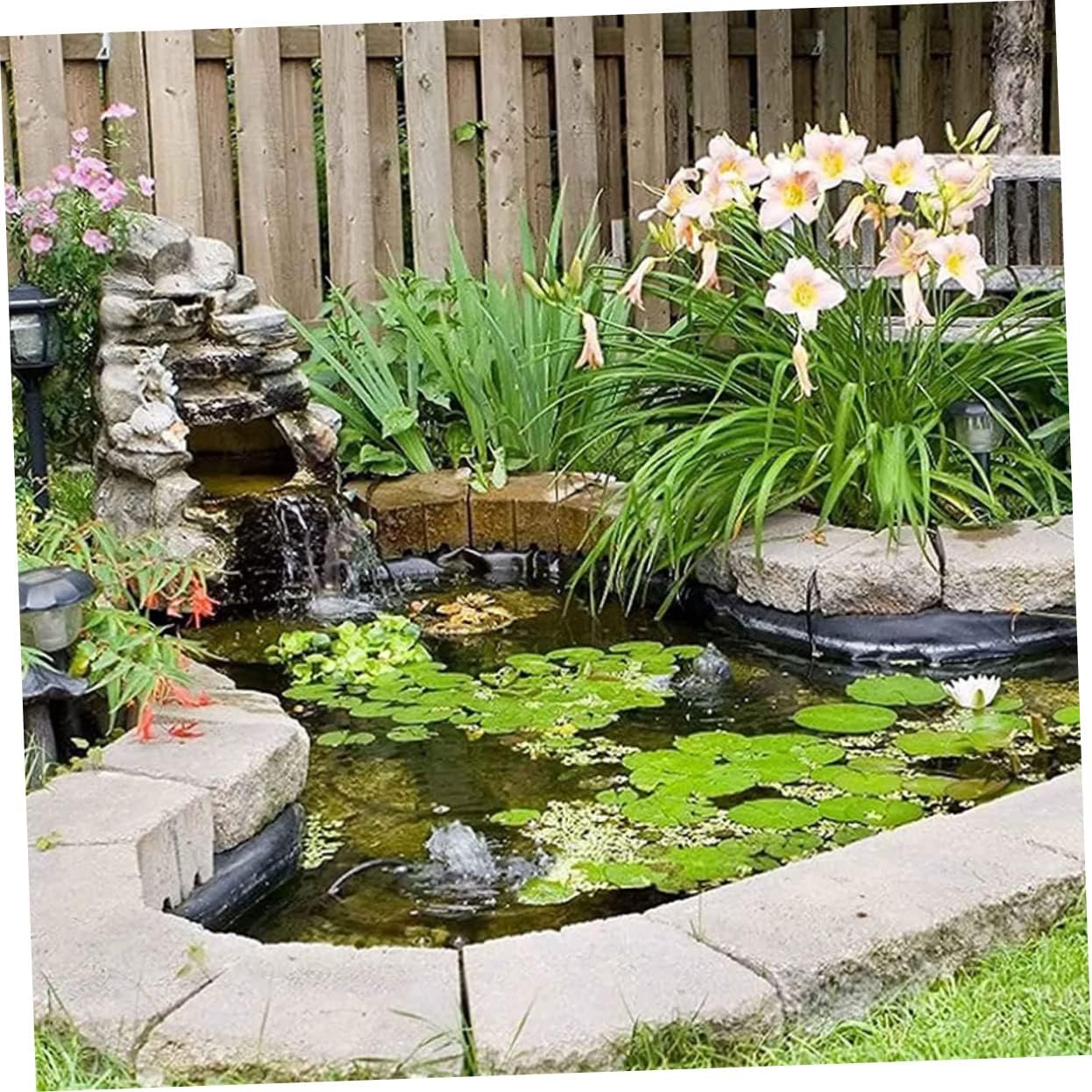 Features:Size of 6.56ft x 9.84ft, pond liner is ideal for small pond, can hold up to 200 gallons of water.Fish pond liner is made of HDPE(High-density polyethylene) material, features high thickness high mechanical strength such as surface hardness, tensile strength and rigidity.Pond skin can be cut to the size you want according to your needs to fit the contours of the pond.Pool liner is for building garden water fountains, water features, outdoors ponds, fish ponds and backyard waterfalls, using rock, shale, or other natural materials to support corners would be .Plastic pond liner can also effectively harmful substances in the soil from seeping into the pond to pollute the water body, allowing you to easily clean the pond.Specification:Color: BlackMaterial: High-density polyethyleneSize: 300X200X0.20cm/117.90X78.60X0.08inchPackage Including:1 x pond liner