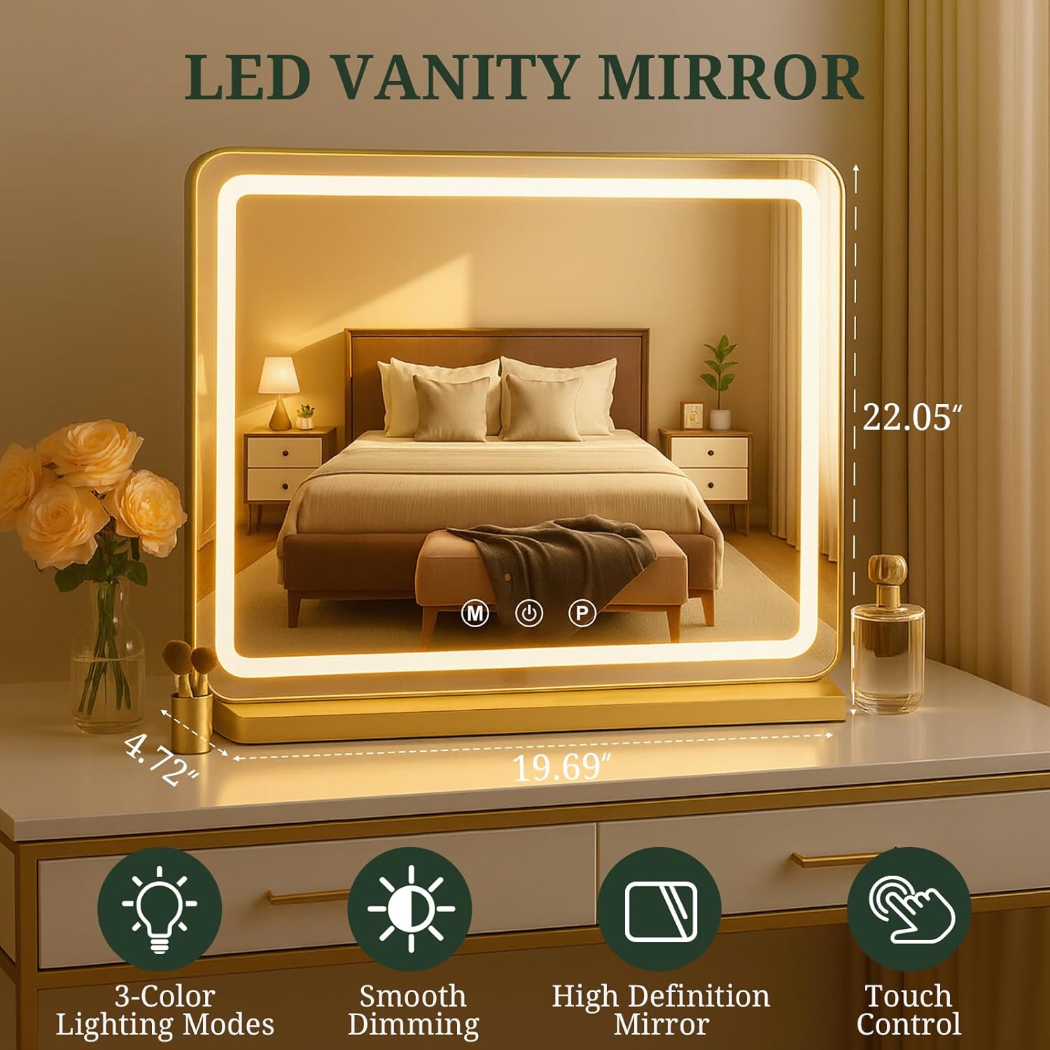 | Item Type Name | 19"x22" LED Makeup Mirror with 3-Color Dimmable Lighting, Smart Touch Control, Memory Function, Tabletop Lighted Mirror for Bedroom, Dressing Room |