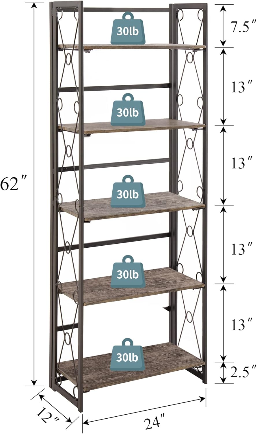 | Model Name | Folding Bookshelf, 5-Tier Bookcase Foldable, |