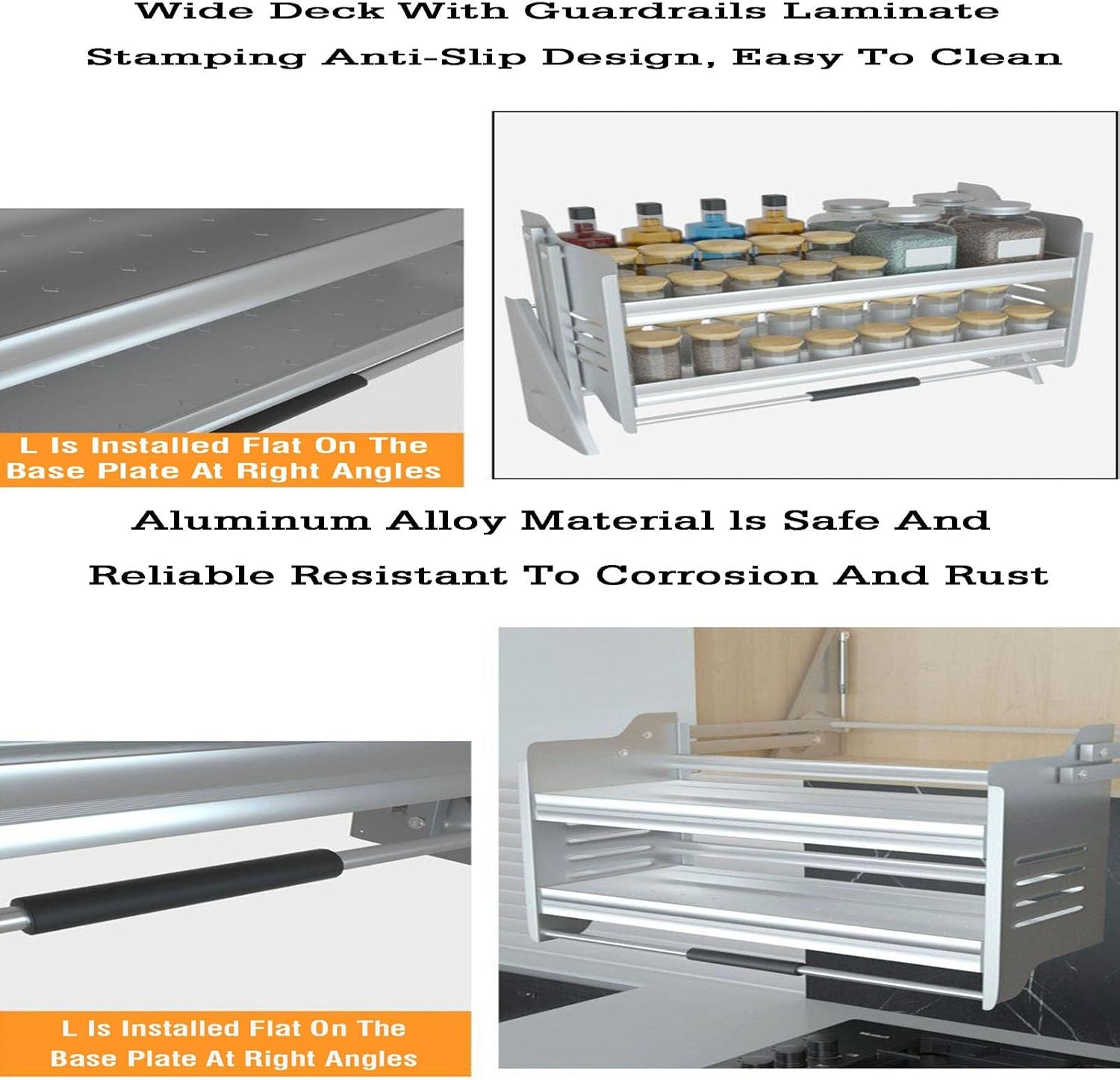 • Material: Pull Down Basket is made of thickened metal, items placed more safely, strong load-bearing capacity,easy to clean for convenience.Thickened side panel combination of strong double support arms, Drop Down Cabinet Shelf Storage use more stable