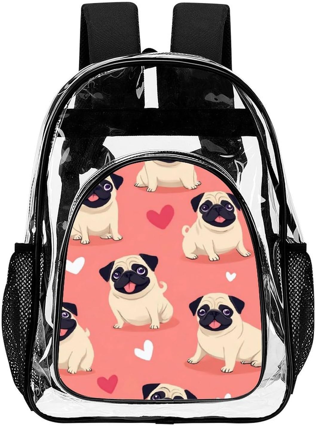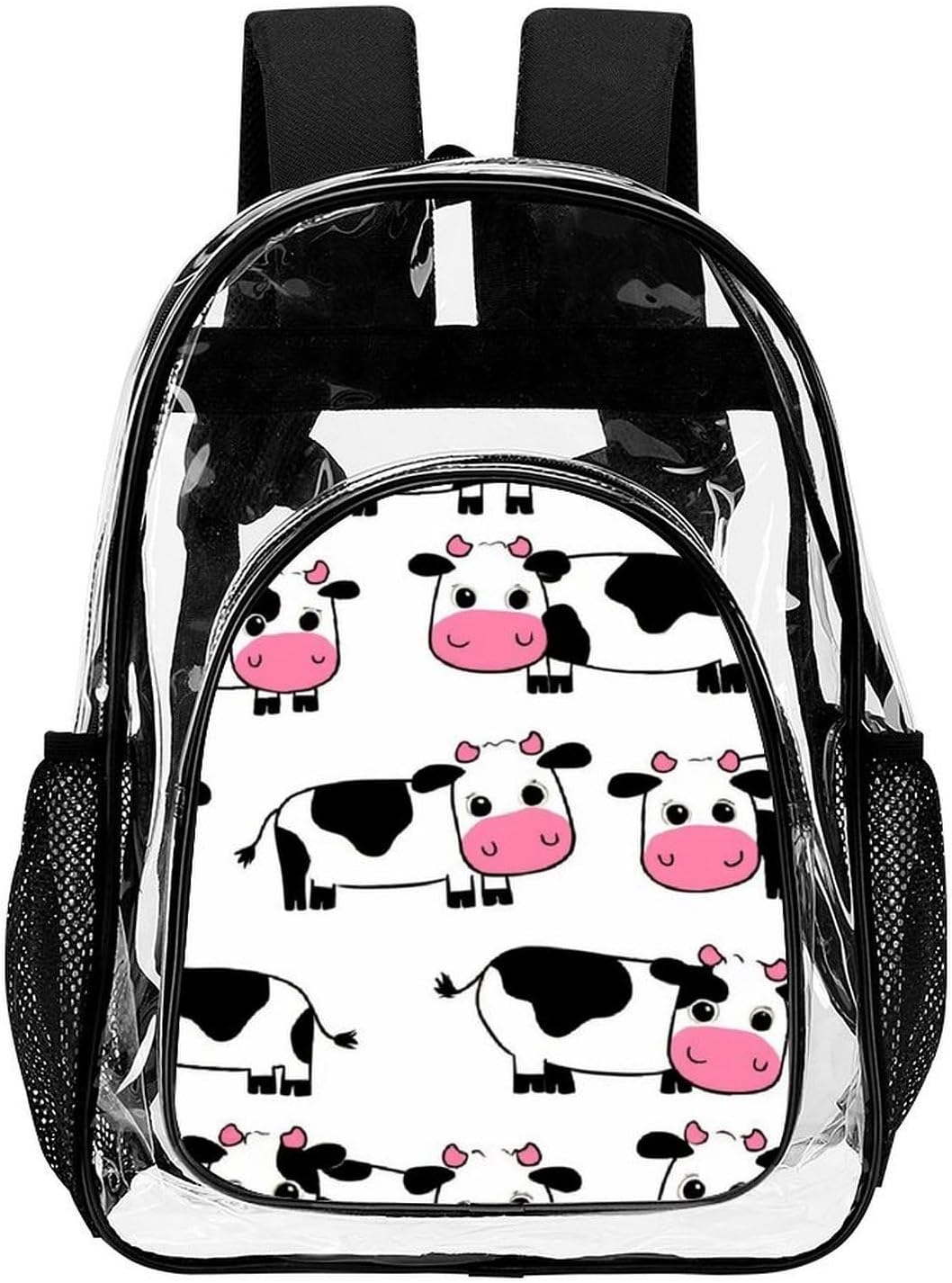 Are you still looking for a lightweight, portable and essential transparent backpack that suits your concert needs?This simple and fashionable backpack of ours is good for you. It is soft and breathable, and very versatile to carry to various occasions!Comfortable Fabric: Made of sturdy PVC material, it is waterproof and breathable, keeping your items dry and providing protection in the rain.Our Sizes: The size is 16.9 x 12.8 x 5.5 inches. It has a large internal storage space, which can provide ample space to store your daily necessities and facilitate your travel activities.Breathable Shoulder Straps: Our transparent bags feature reinforced shoulder straps that are soft and breathable, allowing you to easily adjust and relax your shoulders.Multi-Pocket Design: It features a large main compartment, an external front compartment and two side net pockets, which can store your clothes, computer, umbrella, water bottle and other daily necessities.Wide Range Of Applications: Suitable for various indoor and outdoor occasions, including tourism, work, festivals, camping, outdoor sports and daily leisure use.Easy To Clean: It can be hand-washed in cold water. Do not soak for a long time. Do not bleach. After use, it can be air-dried or air-dried.What are you waiting for? Let this transparent backpack of ours be your daily life companion!