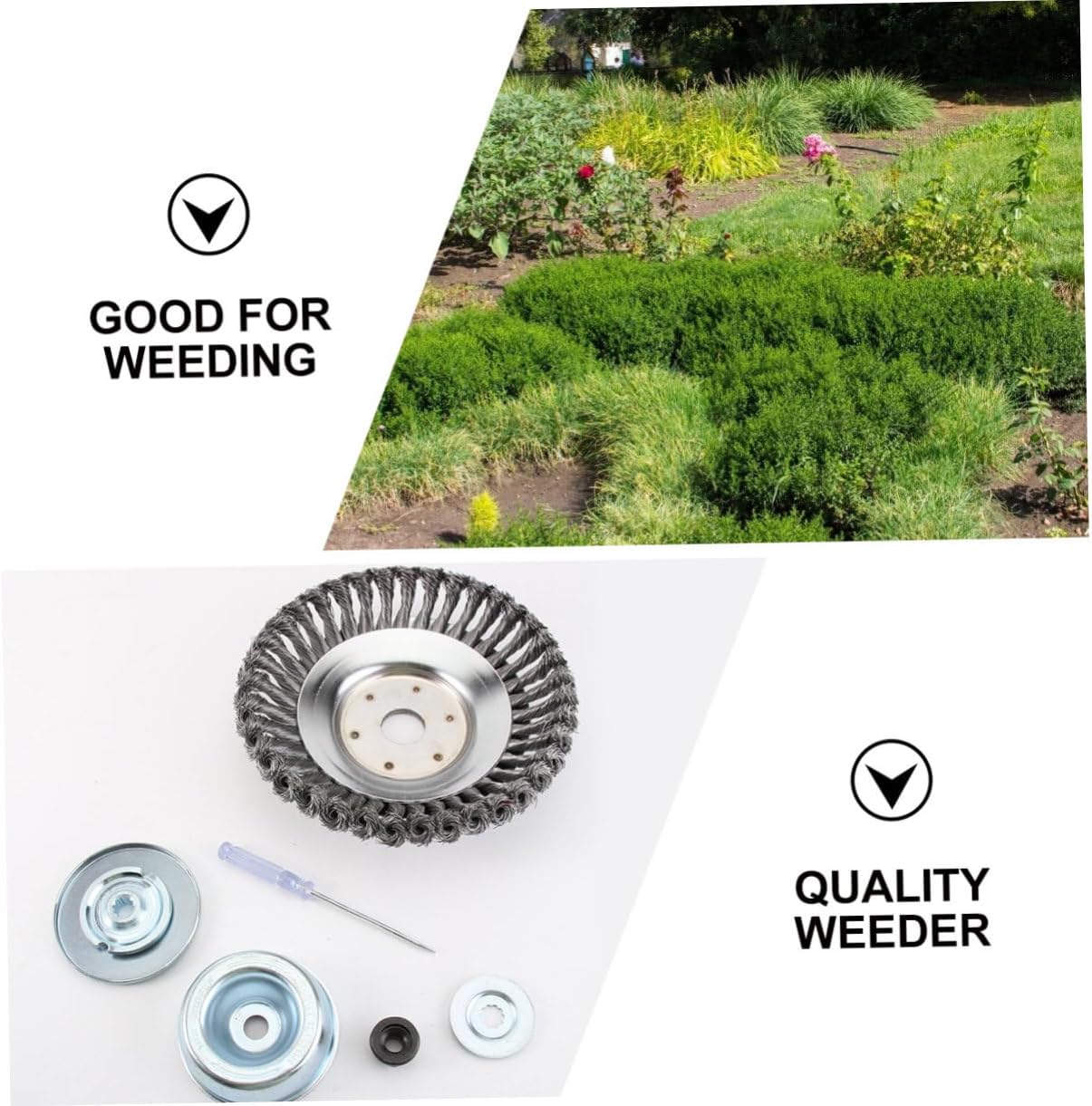 Package List 1 x set of Weeding and repairing tools Features -Color: Silver Weeder Parts - Packing Size: About 20x20x6 cm/7.87x7.87x2.36 inch gardening supplies -Size: About 15.00X15.00X3.50cm/5.89X5.89X1.38in. uprooting weeding tool -Material: Carbon Steel Wire. weeder tool - Easy installation, no need to replace rope, just fix it with washers and nuts wire grass wheel. -The quality of this product is very good, the service life is long, and the cleaning is also very fast weeding tools garden. -The product has a wide range of applications and it is garden lawns, parks and other occasions hand weeder garden tool. - This product has good heat dissipation and it is safer to use hand weeder tool garden weedingtool. - Manufactured with carbon steel wire as the material, with a solid base and high weeding efficiency garden tool.Goods Descriptionweeding wheel At the same time, the product is easy to install, no need to replace the rope, and it is very convenient to use.weeding tool for block paving Compared with other objects, it is safer to use.uprooting weeding tool It is really suitable for cleaning in your courtyard or garden.weeding tool accessories This weeder head is made of carbon steel wire.Weeder Parts Are you still worried about use what kind of tool to remove the in the yard? Why not take at this product