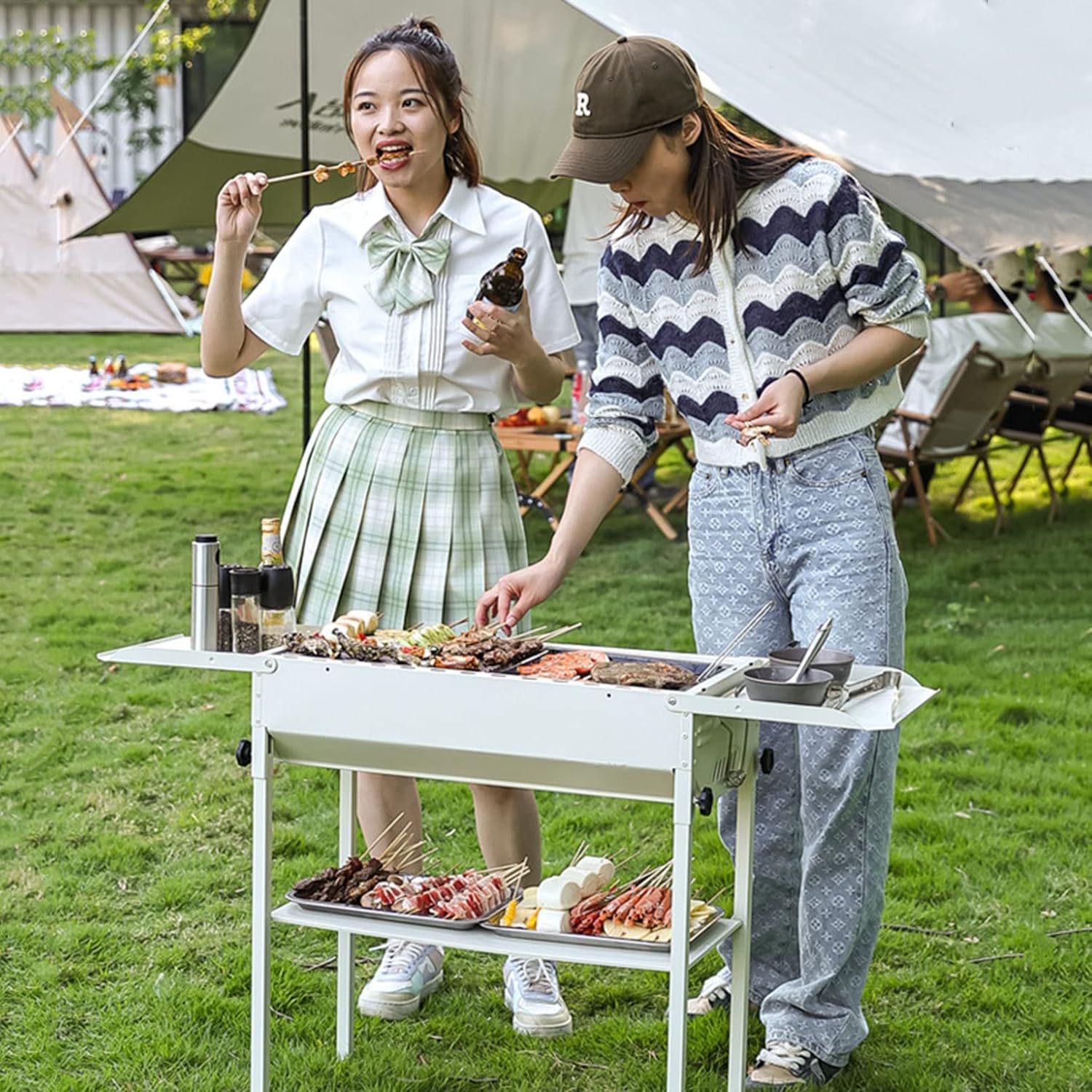 Product Description: Portable folding charcoal grill that fits perfectly on the table or the floor, sturdy and durable, great results! High quality material: Stainless steel Thicker rack: More stable and easier to remove with thicker steel tubing Handle design: two fixed handles on the left and right side of the stove, easy to move Portable folding: Space saving and wide range of use Foldable leg design saves space and makes the oven easy to store. Both sides with anti-burn handle: Convenient, lightweight with plug and play Adjustable height of reinforced legs: Can be finely adjusted up and down about 10cm Stainless steel mesh grill grid: The grill grid is made of stainless steel to ensure safety, hygiene, health and easy cleaning Ventilation design: Fast air flow reduces carbon monoxide production, avoiding poisoning and allowing coals to burn more fully. The cooking grid separates and ventilates the charcoal from the grill, allowing dust to escape and promoting charcoal burning. Thicker lower shelf: Thicker plate, more load-bearing, more ingredients can be placed Foldable side shelves: Easy to use, foldable design, good load-bearing performance for large areas Use recommendations: 1. To clean after use. 2. Do not put heavy objects on the portable charcoal grill to prevent damage and deformation. 3. Can sprinkle a layer of oil on the grill to prevent rusting. 4. It is normal for the grill to feel slightly compressed after heating. 5. Use on a flat or stable surface or table. Caution: due to manual measurement, the size of the product may have a slight error, please understand