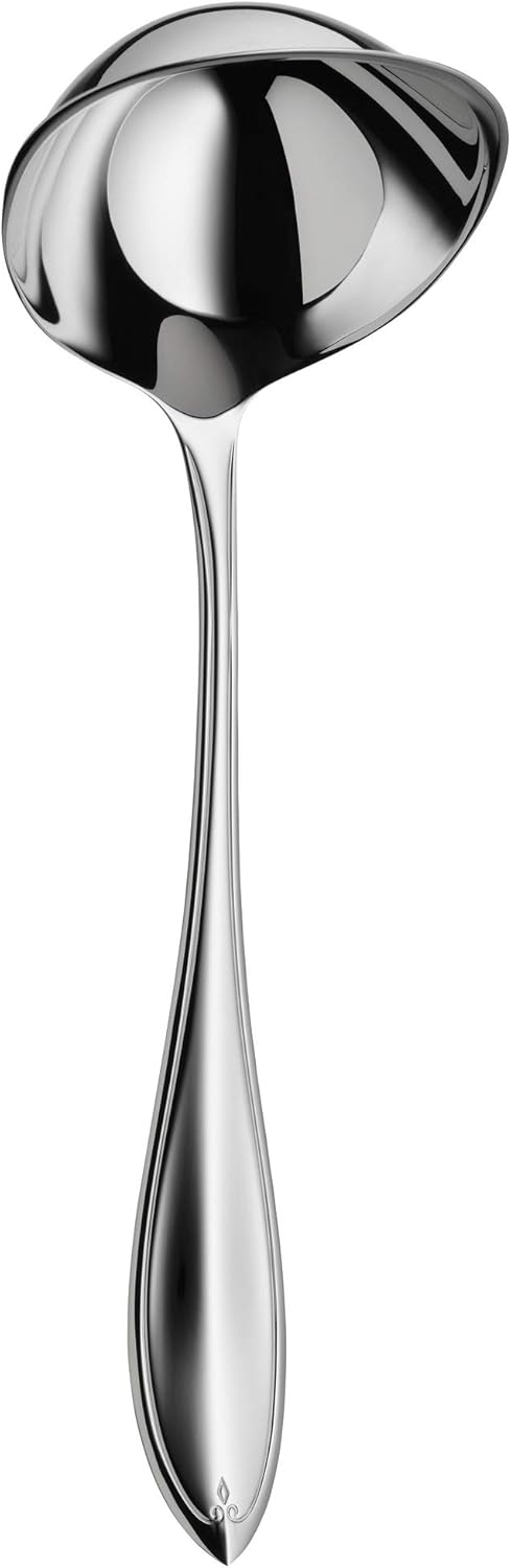 Product Description Various features make this cutlery so unique: its octagonal knife handle, an elaborately crafted bolster, the decorative line design and the leaf motif at the end of the handle. Created by Fred Danner, the design was inspired by the functional forms typical of the Biedermeier period. High quality knives with inserted forged blades guarantee long-lasting cutting performance, and the Cromargan protect finish makes the cutlery highly resistant to scratches. This polished cutlery range also includes numerous complementary items and cutlery serving pieces. It goes without saying: this cutlery set is intended for large gatherings. This twelve person set consists of table forks, table knives and spoons, as well as cake forks and coffee spoons - and some additional practical accessories. These include a two-piece salad server, a serving spoon and a serving fork, a sauce ladle as well as a cake server. Needless to say, the set is available in various WMF designs and complementary items can be added. Thanks to its superior quality it will be an equally attractive and lasting companion. Set Contains: 12 x table spoon, 12 x table fork, 12 x table knife, 12 x teaspoon, 12 x cake fork, 1 x salad server, 2-piece, 1 x serving spoon, 1 x soup ladle*, 1 x serving fork, 1 x cake server* (* = cutlery piece is Cromargan)