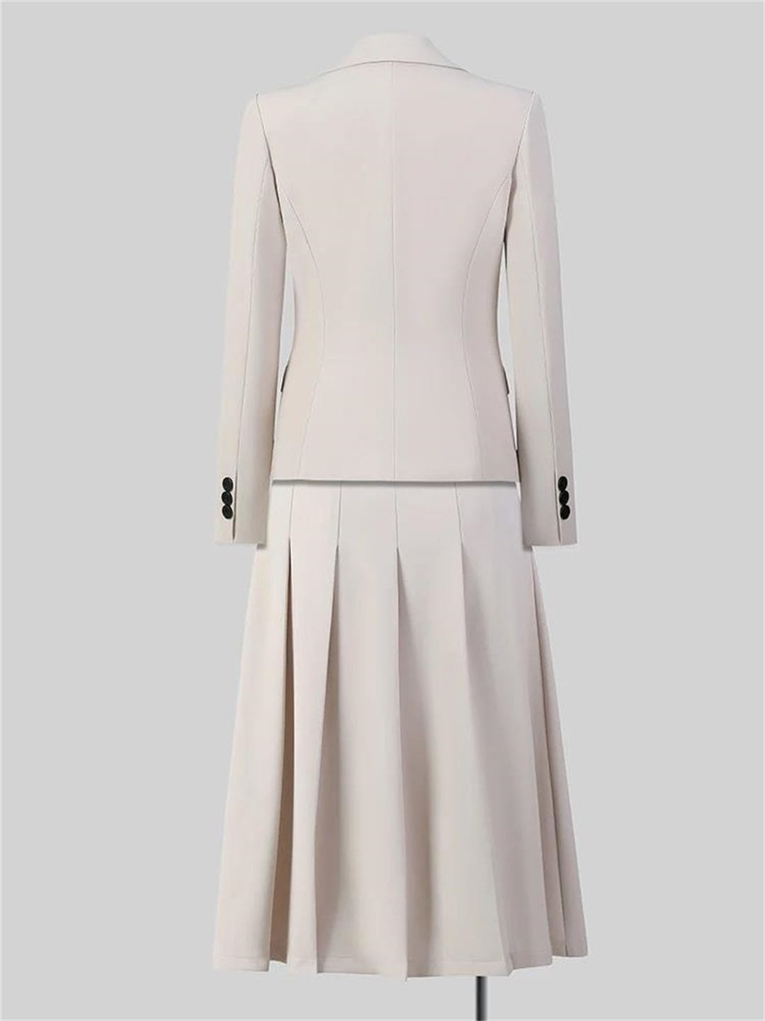 Material: Polyester, SpandexCollar Type: Notched CollarClosure Type: Single-BreastedFully Open: NoSleeve Type: Shirt SleevesSilhouette: Slim FitSeason: Autumn/WinterPattern Type: Solid ColorFabric Type: Synthetic FiberFabric Composition: 96% And AboveClothing Fit: Slim FitMaterial Composition: Polyester; SpandexSleeve Length (Cm): Long SleevesDecoration: ButtonsGender: FemaleProduct Type: Skirt SuitFit: Slim Fit