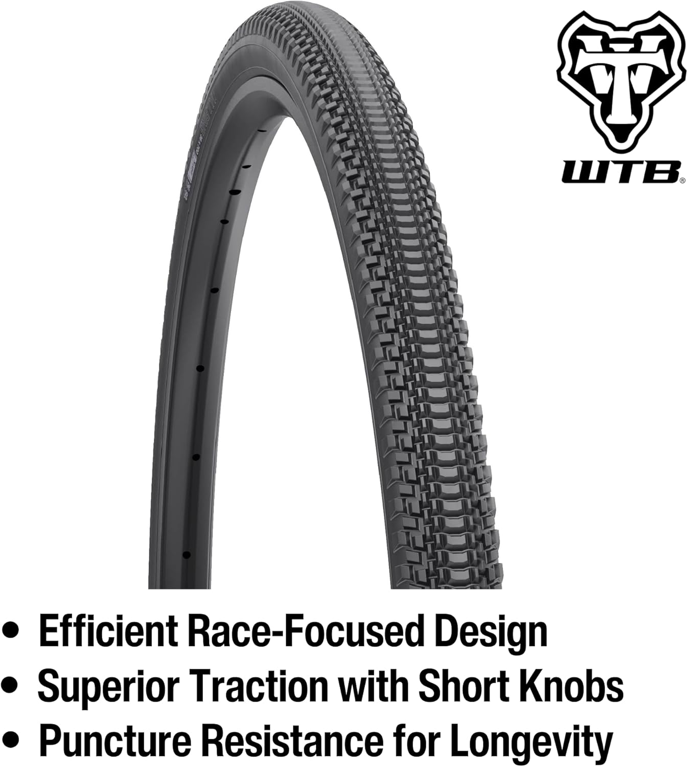 The WTB Tubeless Bike Tire is a race-focused addition to WTB’s renowned line of gravel tires, designed to offer reduced rolling resistance, puncture prevention, and superior traction. With tightly spaced center knobs forming a nearly uninterrupted centerline, the Vulpine is engineered for speed and efficiency on mixed surfaces, including pavement, hardpack, and gravel. Ideal for gravel racers and daily riders alike, this tire excels in maintaining high speeds without sacrificing climbing or braking traction. The Vulpine’s tread is packed with short knobs that offer predictable cornering grip, ensuring confidence across various terrains. Its round profile mimics high-volume road tires, providing equal traction in different conditions. Designed for durability, the Vulpine minimizes the chance of punctures, allowing for longer rides with fewer interruptions. The TCS tubeless-ready system further enhances comfort by allowing riders to run lower tire pressures, improving traction, smoothing out rough terrain, and reducing the risk of flats. Available in 36mm and 40mm widths, the WTB Vulpine is perfect for riders looking to lead the pack in races or cruise efficiently on daily rides. With its smooth-rolling design and puncture-resistant construction, the Vulpine is built to handle it all.