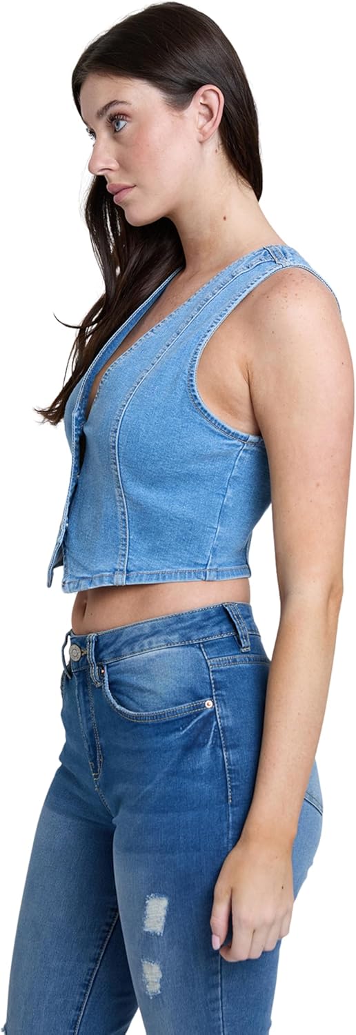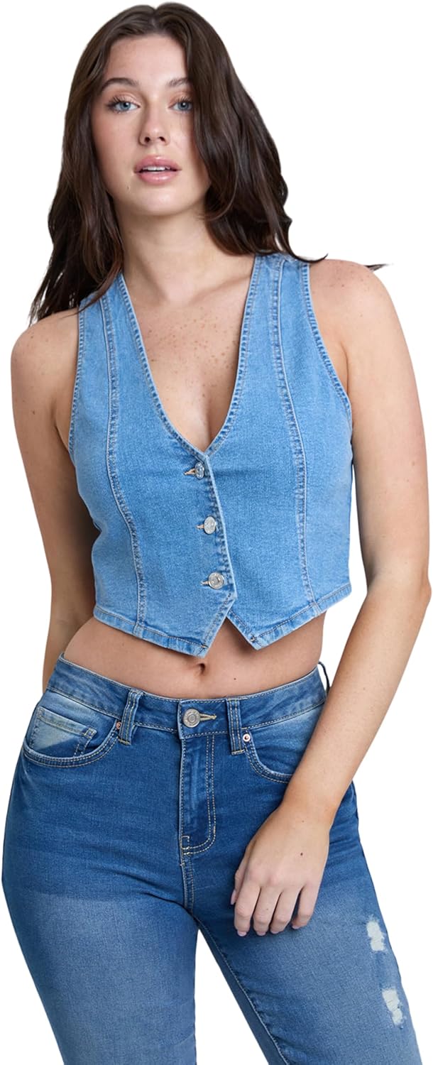 | Style | Ymi Jeans Women's Cropped Button Front Vest, V44775 |